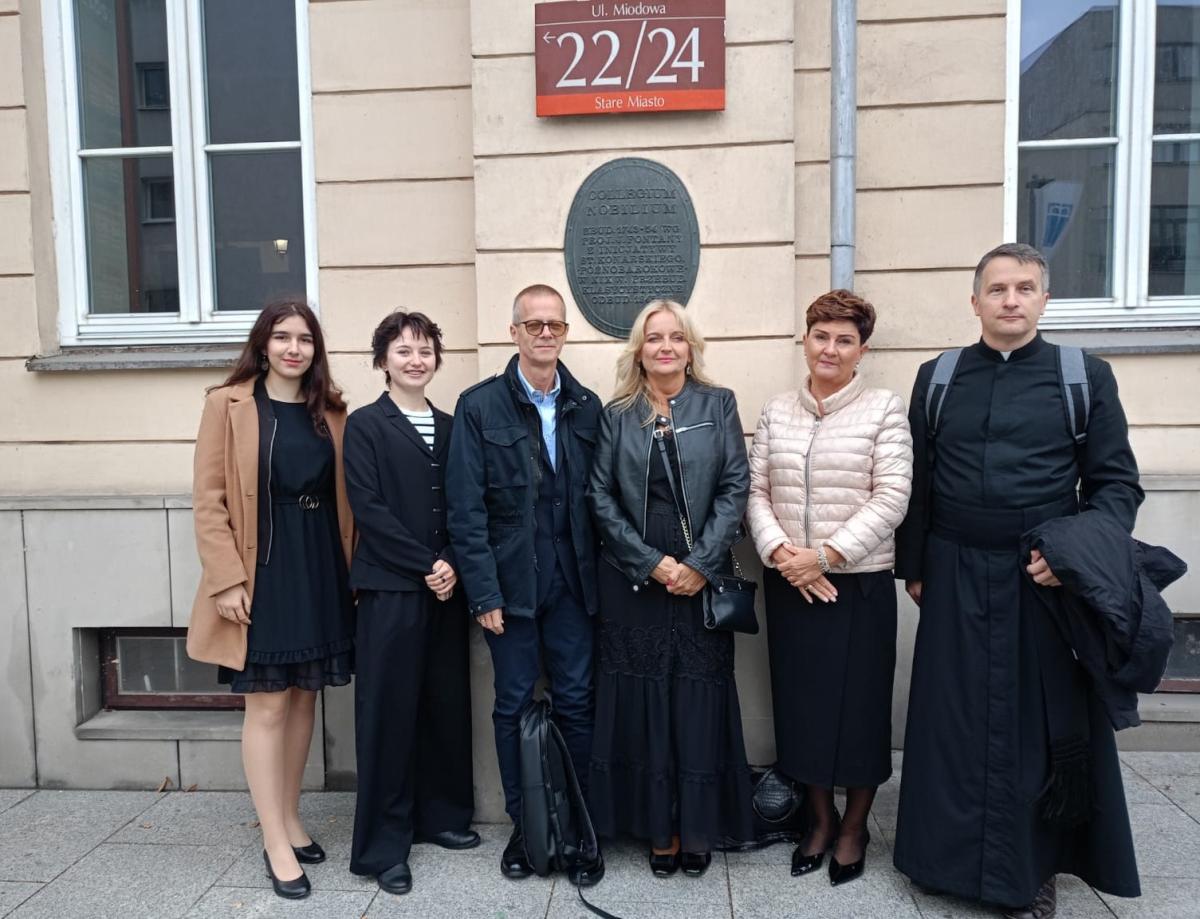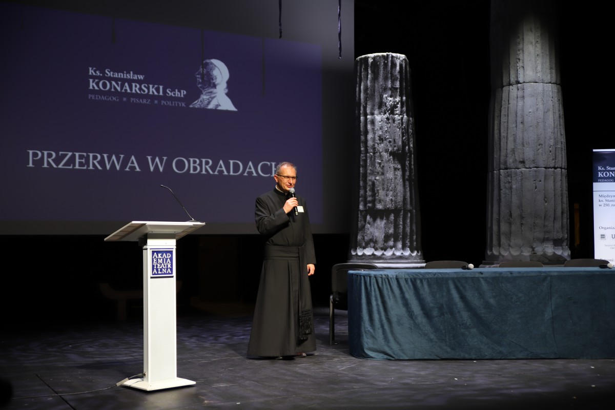 W dniach 4-5 października 2023 r. delegacja naszej szkoły w składzie: o. Marek Kudach, p. Agata Kozicka, p. Paweł Jaworski, p. Renata Marszałek oraz licealistki Dominika Grzyb i Anna Jędzierowska wzięła udział w dwóch ważnych wydarzeniach, które odbywały się w Warszawie. Pierwszym z nich była Międzynarodowa Konferencja Poświęcona Ks. Stanisławowi Konarskiemu w 250. Rocznicę Śmierci. Rozpoczęła się Eucharystią w katedrze polowej Ordynariatu Polowego, gdzie zgromadzili się nie tylko uczestnicy konferencji, ale również delegacje szkół pijarskich z Krakowa, Bolesławca, Łowicza, Warszawy i Elbląga. Eucharystii przewodniczył kard. Kazimierz Nycz, metropolita warszawski, obecni byli również Generał Zakonu Pijarów o. Pedro Aguado, Asystent Generalny na Europę o. Carles Gil, Prowincjał Polskiej Prowincji Zakonu Pijarów o. Mateusz Pindelski oraz licznie zgromadzeni ojcowie pijarzy.