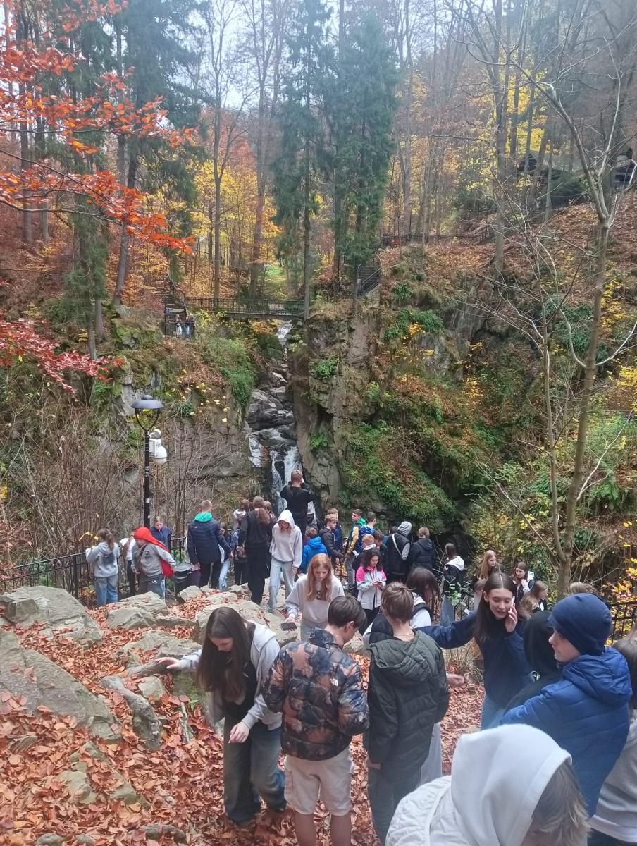 Po legnickim wstępie autokarem wyjechaliśmy do Międzygórza. Nasi uczniowie wraz z ponad stuosobową grupą uczniów z Wiśniowej Góry i Kołobrzegu pod wodzą animatorów z Gruzji, Włoch, Kolumbii oraz USA rozmawiali, bawili się, tworzyli scenki teatralne i integrowali się w języku angielskim. Była okazja, żeby zobaczyć wodospad Wilczki oraz Tamę w Międzygórzu.