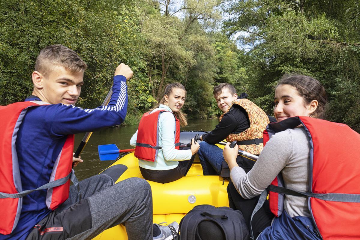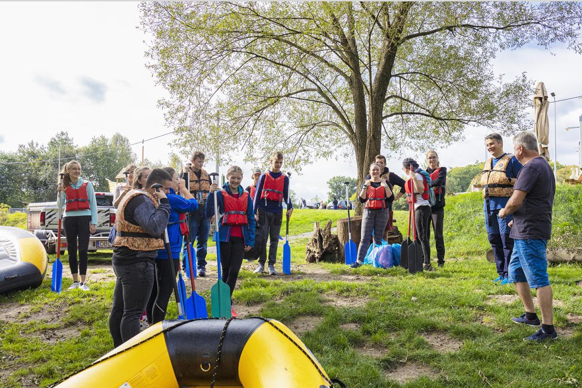 W sobotę 27 września uczniowe z naszego liceum wybrali się na zorganizowany przez p. Andrzeja Raszczuka spływ pontonowy rzeką Kwisą. Rankiem pogoda nie zapowiadała się dobrze, szczęśliwie dla uczestników zmieniło się to przed samym wodowaniem i piękne słońce świeciło już do samego końca. Ojciec Dyrektor, pan Andrzej i uczniowie zebrali się o godzinie 11:00 w Ławszowej, gdzie spływ miał się zacząć. Wszyscy podzielili się na trzy grupy, każda płynęła w oddzielnym pontonie. Pierwsza połowa trasy była łatwiejsza do pokonania. Stan wody był dość wysoki, co oznaczało brak zagrożenia zatrzymania się na mieliźnie. Szybko dopłynięto na przerwę na dzikiej plaży, gdzie czekało już rozpalone ognisko i przygotowane przez rodziców kiełbaski do pieczenia i napoje. W akompaniamencie muzyki i rozmów uczniowie nabrali sił na dalszą część spływu, tym razem trudniejszą. Na rzece było wiele powalonych drzew, które trzeba było umiejętnie przepłynąć. Jedną z przeszkód był nawet niewysoki wodospad. Nie obyło się bez wpadania do wody, jednak zawsze kończyło się jedynie na śmiechu, ponieważ wszystkie kwestie bezpieczeństwa, tj. kapoki, były zachowane i nikomu nic się nie stało. Cały spływ trwał w sumie około 2,5 godziny. Niektórzy przemoczeni, ale wszyscy bardzo zadowoleni wrócili do domów z chęcią jak najszybszego powtórzenia takiego wydarzenia.