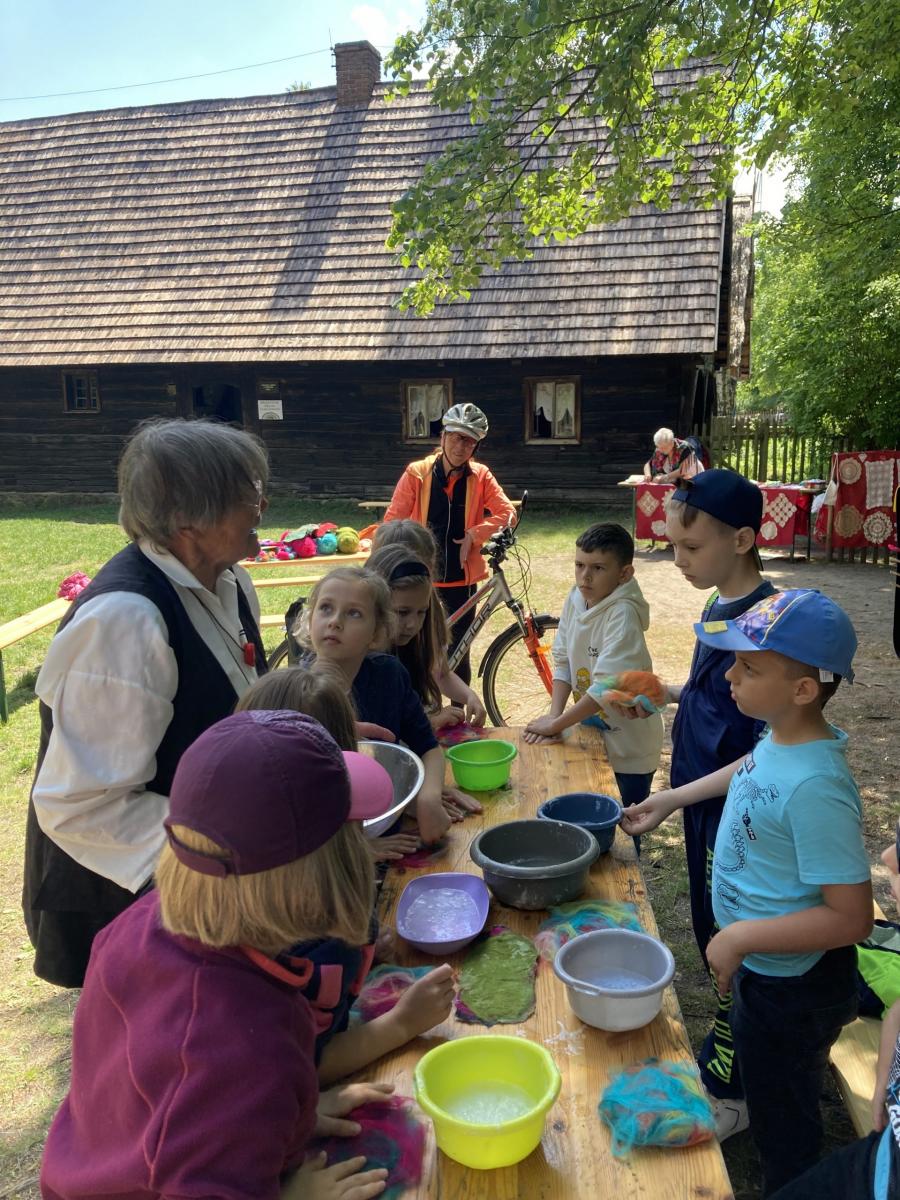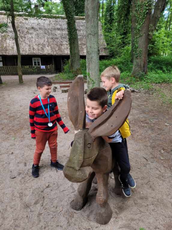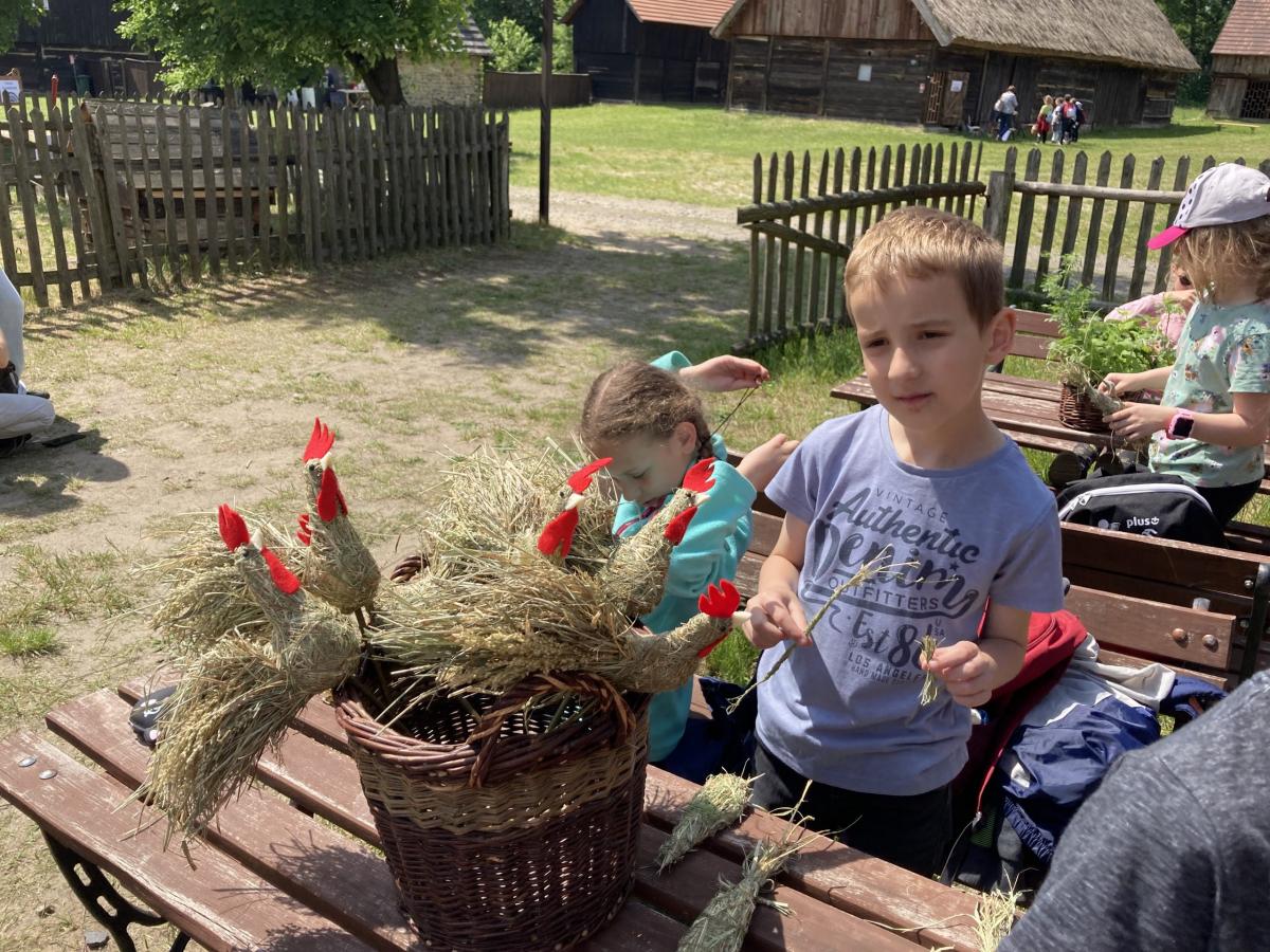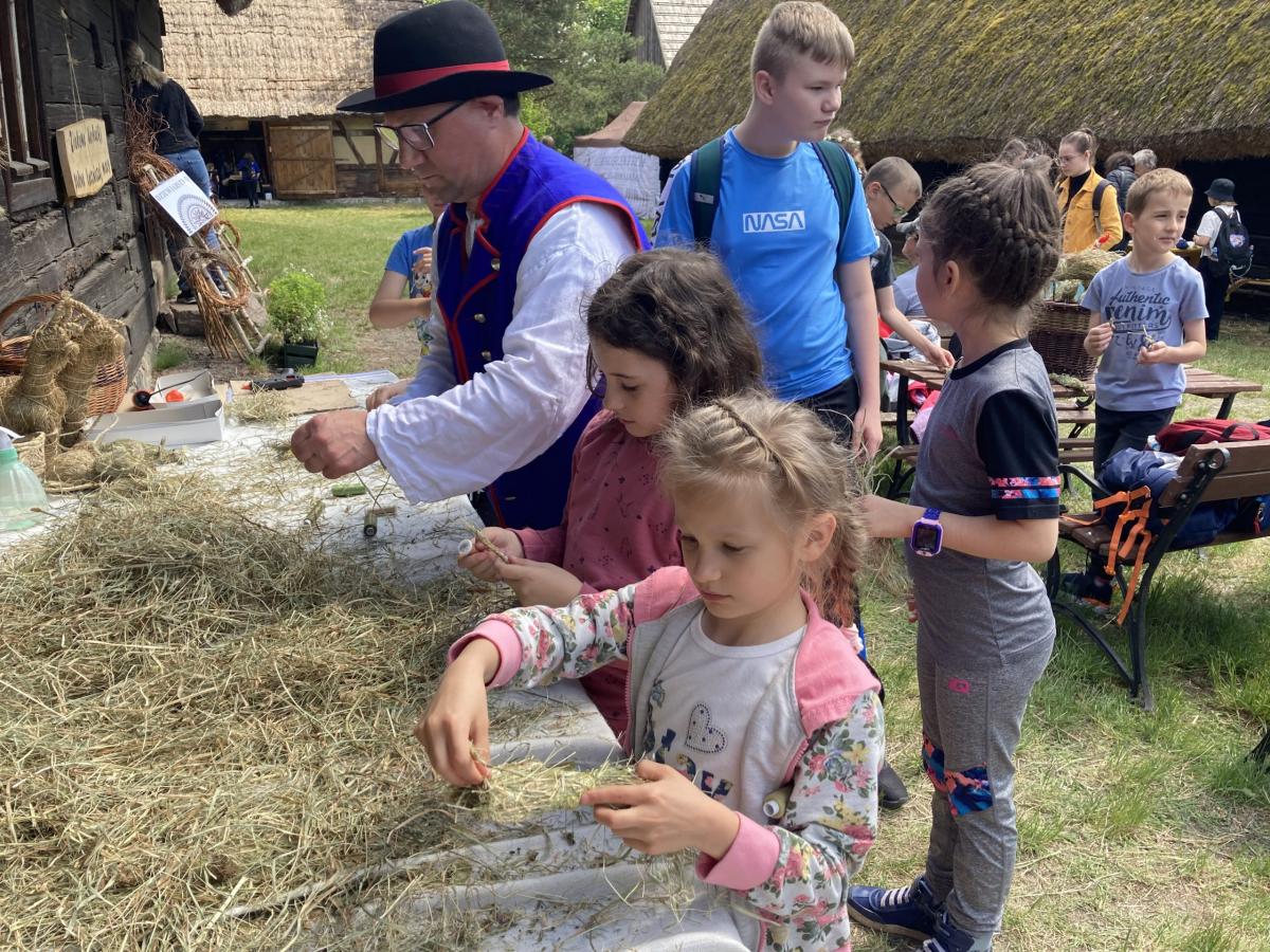 1 czerwca 2022r. z okazji Dnia Dziecka klasy drugie pojechały na wycieczkę do Ochli koło Zielonej Góry. Na przełomie maja i czerwca na terenie Muzeum Etnograficznego ma miejsce wydarzenie „Ginące zawody i umiejętności”. Mieliśmy okazję zobaczyć wspaniałą twórczość rękodzielniczą, sami również uczestniczyliśmy w warsztatach. Część koleżanek i kolegów robiła zwierzaki z siana, inni filcowali wełnę. Była to wspaniała zabawa. Był czas na zwiedzanie skansenu, rozmowy z twórcami, kupno pamiątek. Po zjedzeniu obiadu spróbowaliśmy swoich sił na sprawnościowym torze przeszkód Kosmicznej Olimpiady przygotowanej przez Planetarium Wenus przy Centrum Nauki Keplera w Zielonej Górze. Każdy uczestnik otrzymał pamiątkową odznakę, dyplom i słodką niespodziankę. Na koniec spotkania było wspólne zdjęcia wykonane z wysokości 5…10…20 metrów. Chętnie udzieliliśmy wywiadu dziennikarzowi Radia Zielona Góra. Co powiedzieliśmy na temat wrażeń z pobytu w skansenie oraz o kosmosie możecie usłyszeć w audycji zielonogórskiego radia, którego link jest poniżej. Pełni wrażeń wróciliśmy do Bolesławca. To był wspaniały Dzień Dziecka. Zapraszamy do fotorelacji!