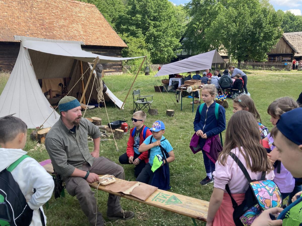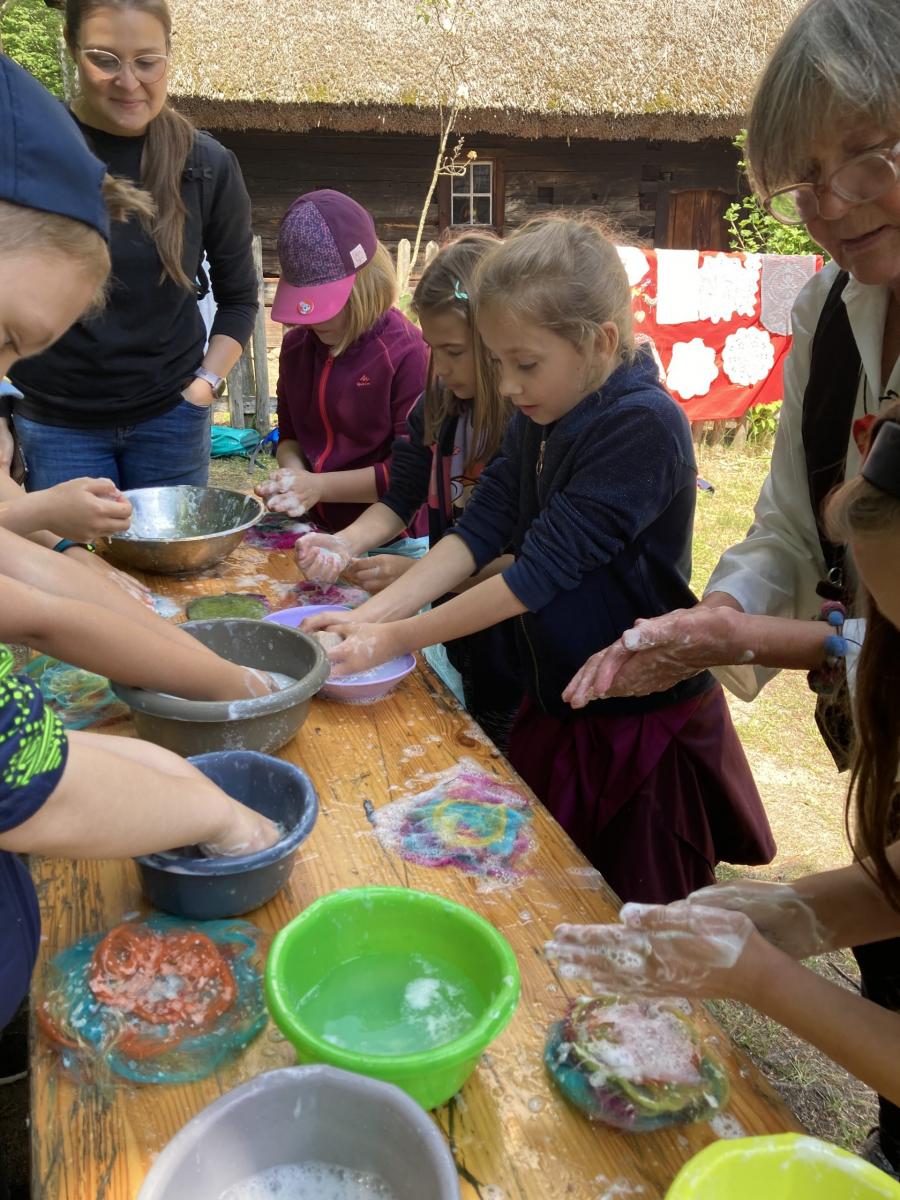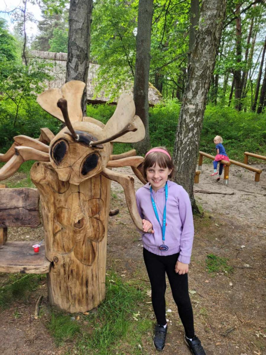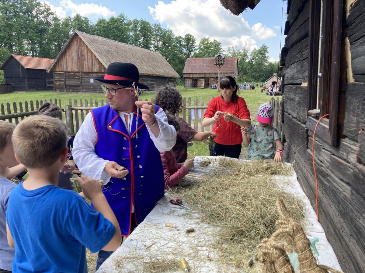 1 czerwca 2022r. z okazji Dnia Dziecka klasy drugie pojechały na wycieczkę do Ochli koło Zielonej Góry. Na przełomie maja i czerwca na terenie Muzeum Etnograficznego ma miejsce wydarzenie „Ginące zawody i umiejętności”. Mieliśmy okazję zobaczyć wspaniałą twórczość rękodzielniczą, sami również uczestniczyliśmy w warsztatach. Część koleżanek i kolegów robiła zwierzaki z siana, inni filcowali wełnę. Była to wspaniała zabawa. Był czas na zwiedzanie skansenu, rozmowy z twórcami, kupno pamiątek. Po zjedzeniu obiadu spróbowaliśmy swoich sił na sprawnościowym torze przeszkód Kosmicznej Olimpiady przygotowanej przez Planetarium Wenus przy Centrum Nauki Keplera w Zielonej Górze. Każdy uczestnik otrzymał pamiątkową odznakę, dyplom i słodką niespodziankę. Na koniec spotkania było wspólne zdjęcia wykonane z wysokości 5…10…20 metrów. Chętnie udzieliliśmy wywiadu dziennikarzowi Radia Zielona Góra. Co powiedzieliśmy na temat wrażeń z pobytu w skansenie oraz o kosmosie możecie usłyszeć w audycji zielonogórskiego radia, którego link jest poniżej. Pełni wrażeń wróciliśmy do Bolesławca. To był wspaniały Dzień Dziecka. Zapraszamy do fotorelacji!