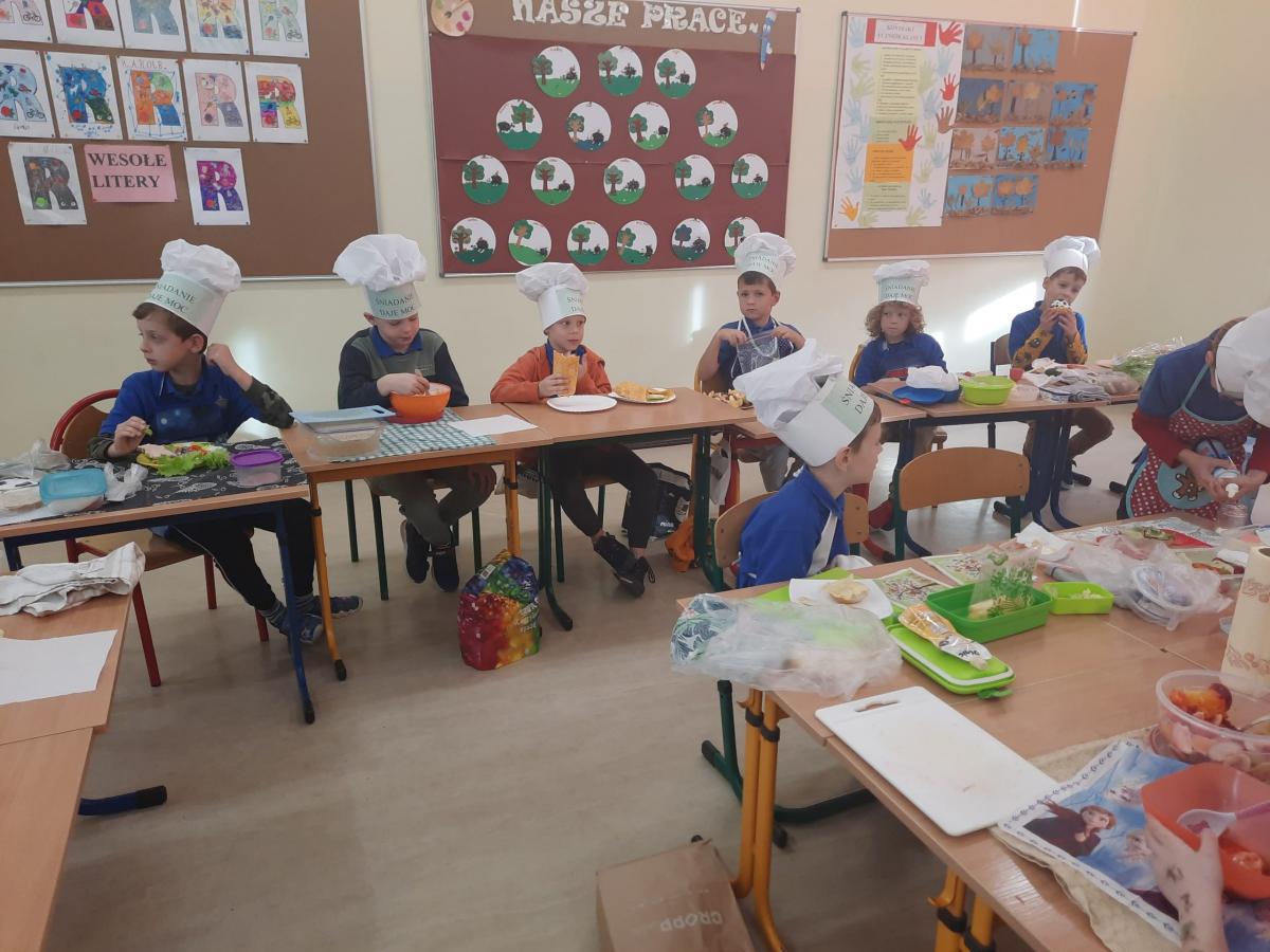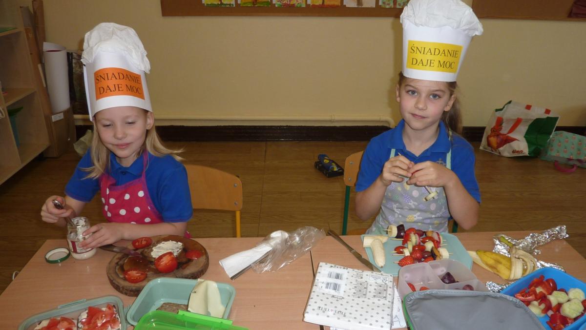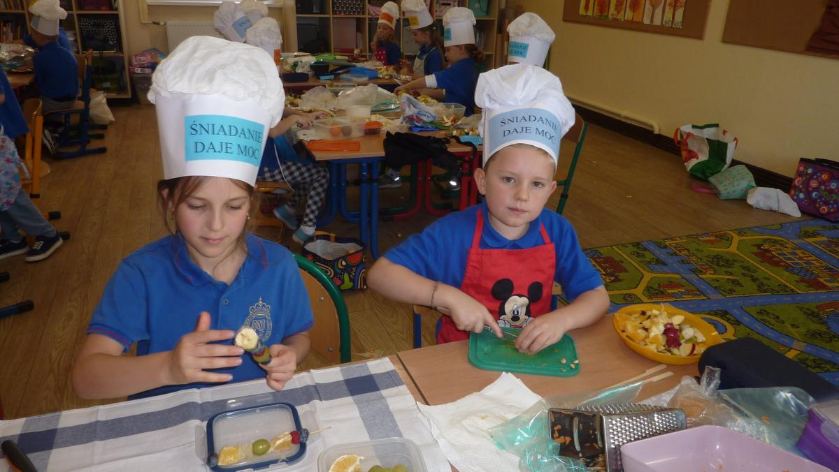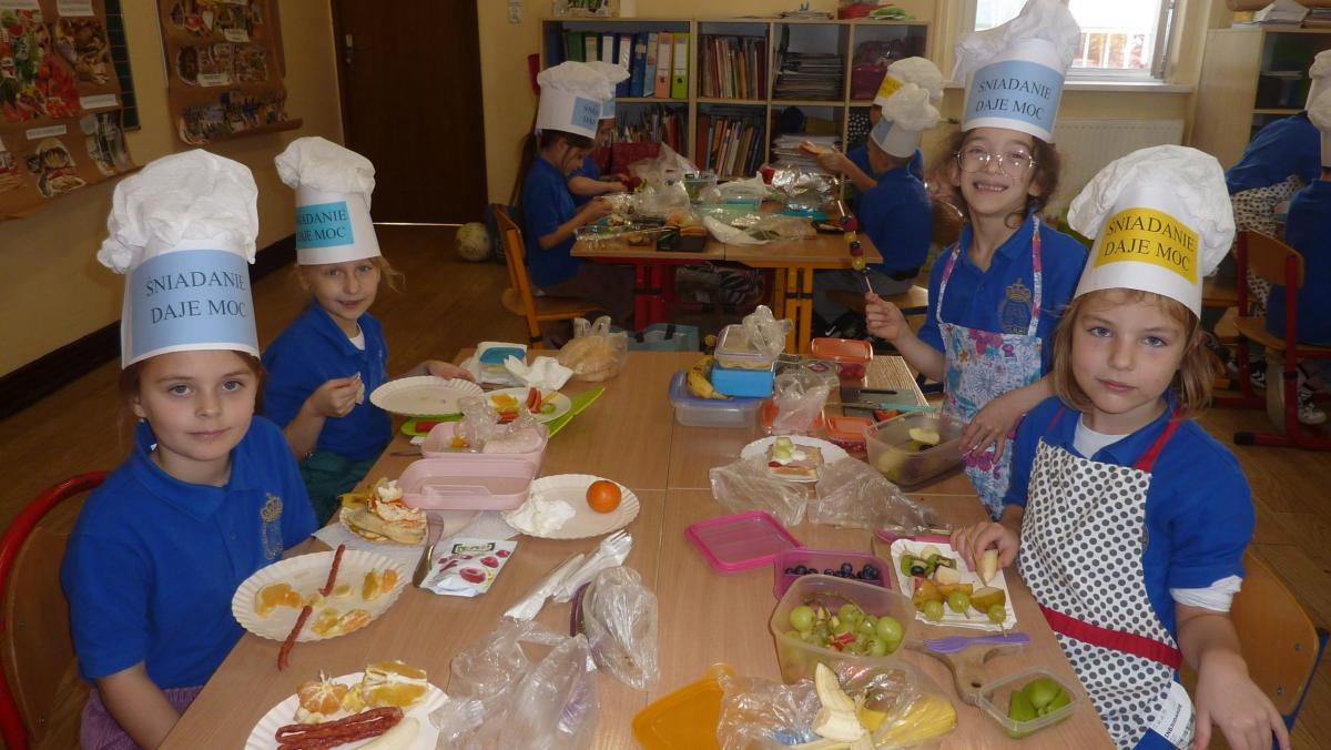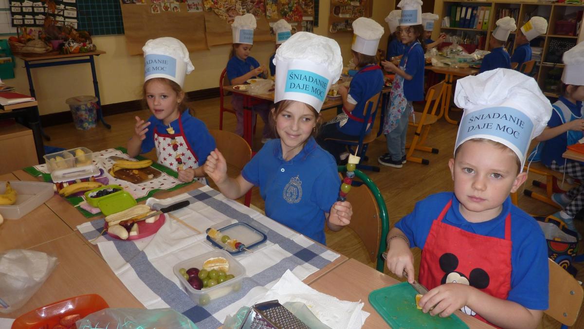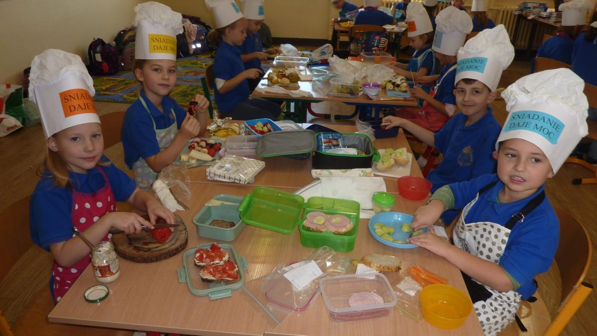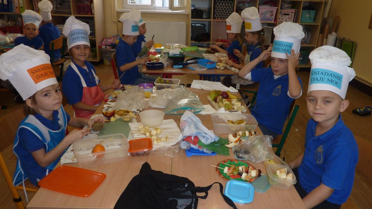 Ósmego listopada po raz kolejny uczniowie z klas 1-3 wzięli udział w programie pn. „Śniadanie daje moc”. W klasach dzieci przygotowywały zdrowe śniadania. Były to kanapki z pieczywem pełnoziarnistym i warzywami, kolorowe szaszłyki owocowe, jogurt naturalny z owocami i musli oraz sałatki owocowe. Przygotowując właśnie takie śniadanie uczniowie uczyli się zasad zdrowego odżywiania i roli śniadania w codziennej diecie. Przygotowanie śniadania w szkole było świetną zabawą, ale też nauką o tym, czym jest zdrowe odżywianie. .Po samodzielnym przygotowaniu posiłku każde dziecko otrzymało dyplom uznania.