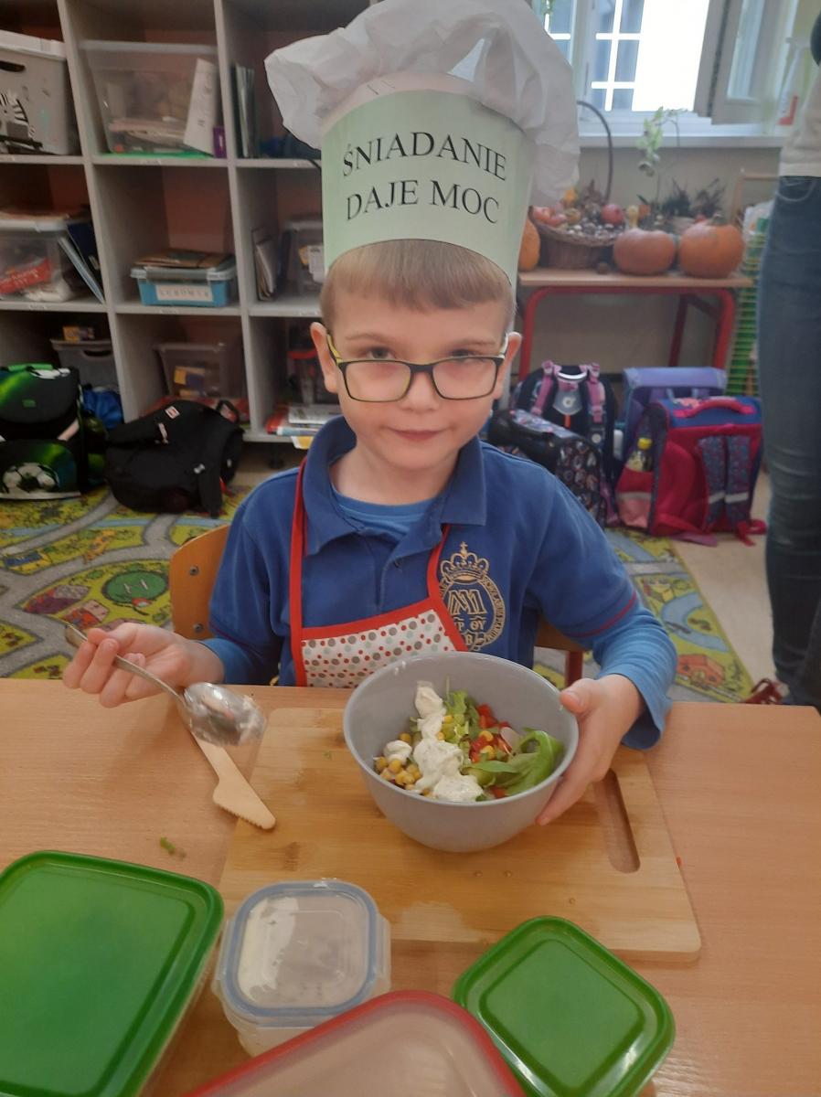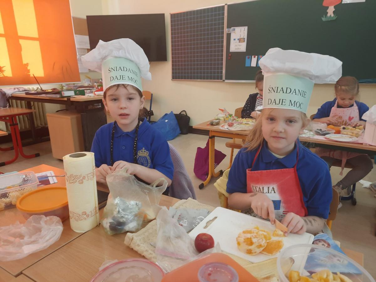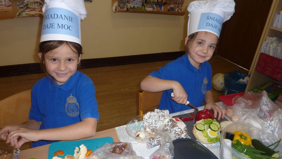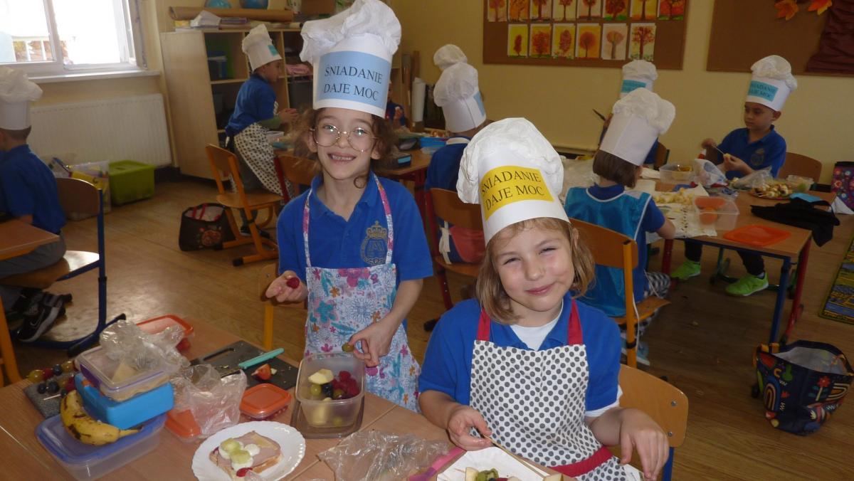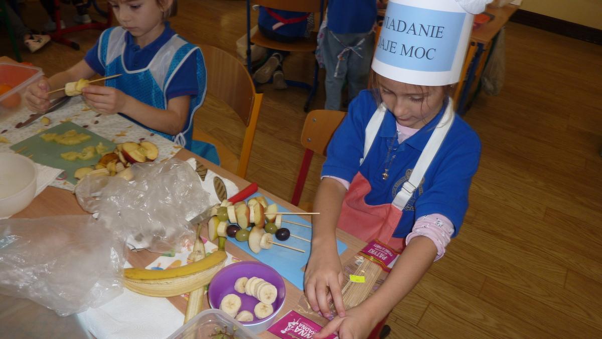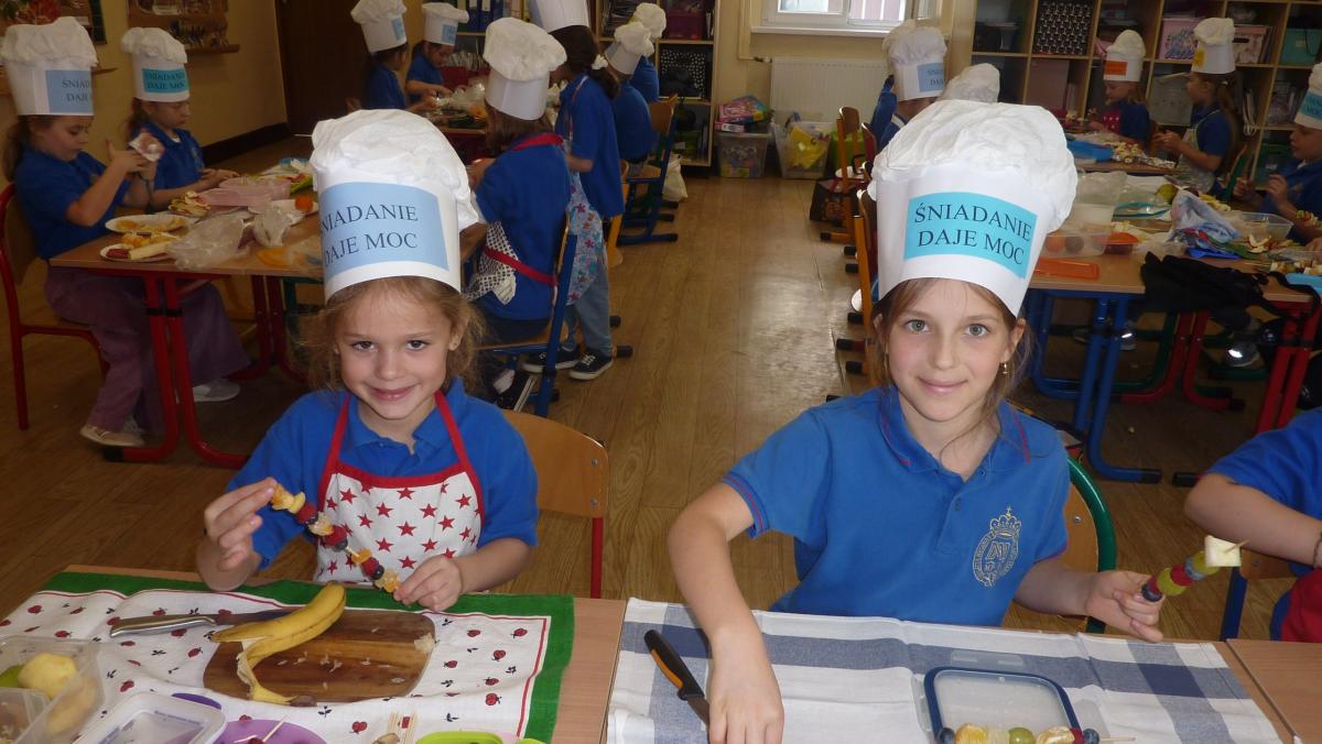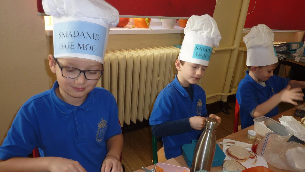 Ósmego listopada po raz kolejny uczniowie z klas 1-3 wzięli udział w programie pn. „Śniadanie daje moc”. W klasach dzieci przygotowywały zdrowe śniadania. Były to kanapki z pieczywem pełnoziarnistym i warzywami, kolorowe szaszłyki owocowe, jogurt naturalny z owocami i musli oraz sałatki owocowe. Przygotowując właśnie takie śniadanie uczniowie uczyli się zasad zdrowego odżywiania i roli śniadania w codziennej diecie. Przygotowanie śniadania w szkole było świetną zabawą, ale też nauką o tym, czym jest zdrowe odżywianie. .Po samodzielnym przygotowaniu posiłku każde dziecko otrzymało dyplom uznania.