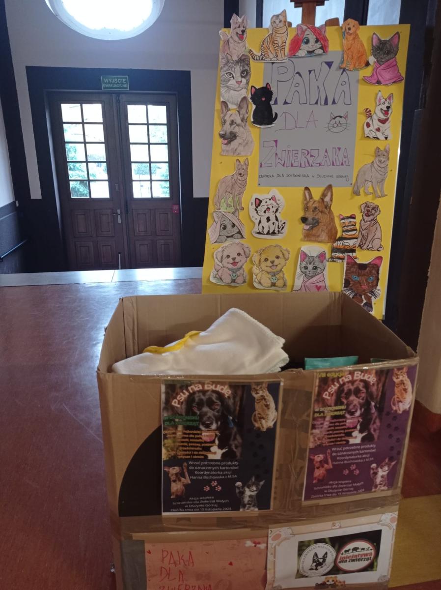 W dniach 04.11- 15.11.2024 roku w naszej szkole odbyła się akcja charytatywna na rzecz podopiecznych Schroniska Dla Zwierząt Małych w Dłużynie Górnej. W minioną sobotę zebrane dary zostały przekazane adresatowi zbiórki.