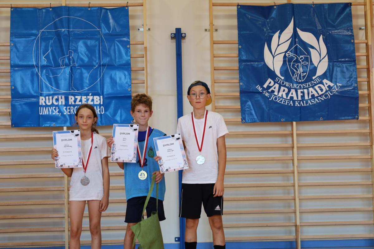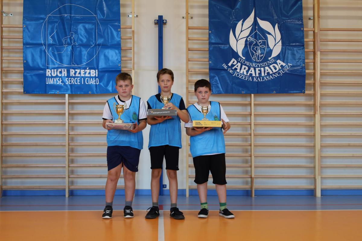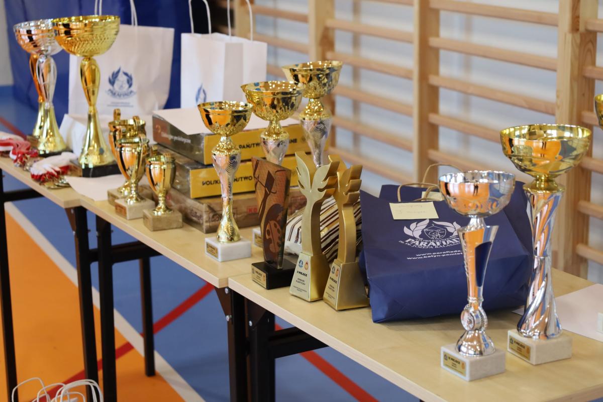 Zwycięzcy poszczególnych konkursów otrzymali puchary, medale, dyplomy i nagrody ufundowane przez Stowarzyszenie Parafiada im. św. Józefa Kalasancjusza. Wszystkie starty i miejsca były punktowane, a drużyny rywalizowały finalnie o tytuł „Najwszechstronniejszej reprezentacji”. Ten największy puchar wielkim zaangażowaniem i walką do samego końca wywalczyła w tym roku reprezentacja naszej szkoły, przed SP 2, SP 3 i SP 1.