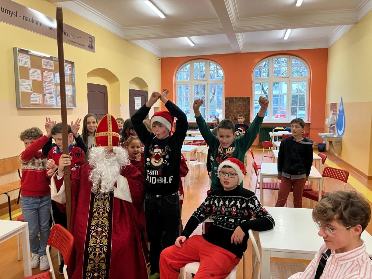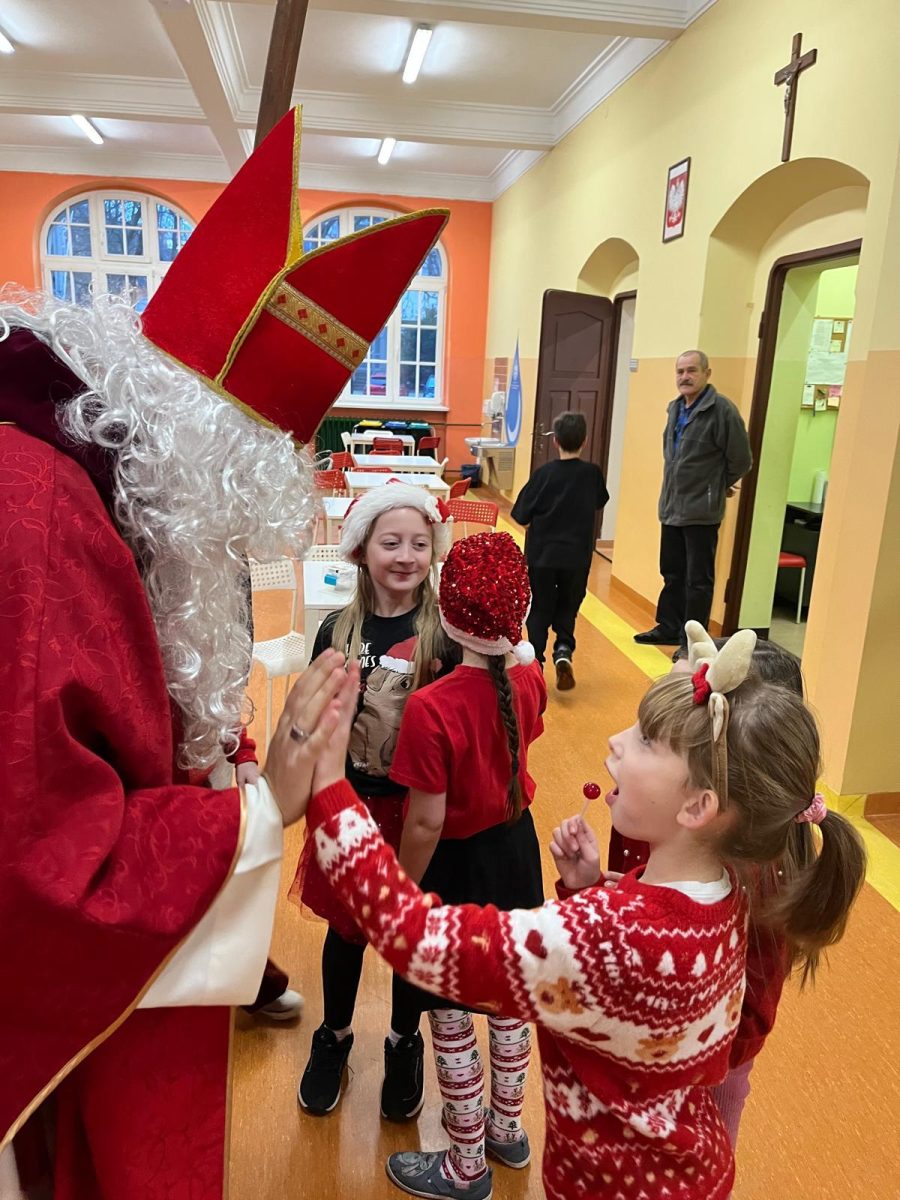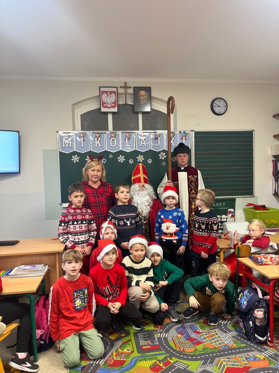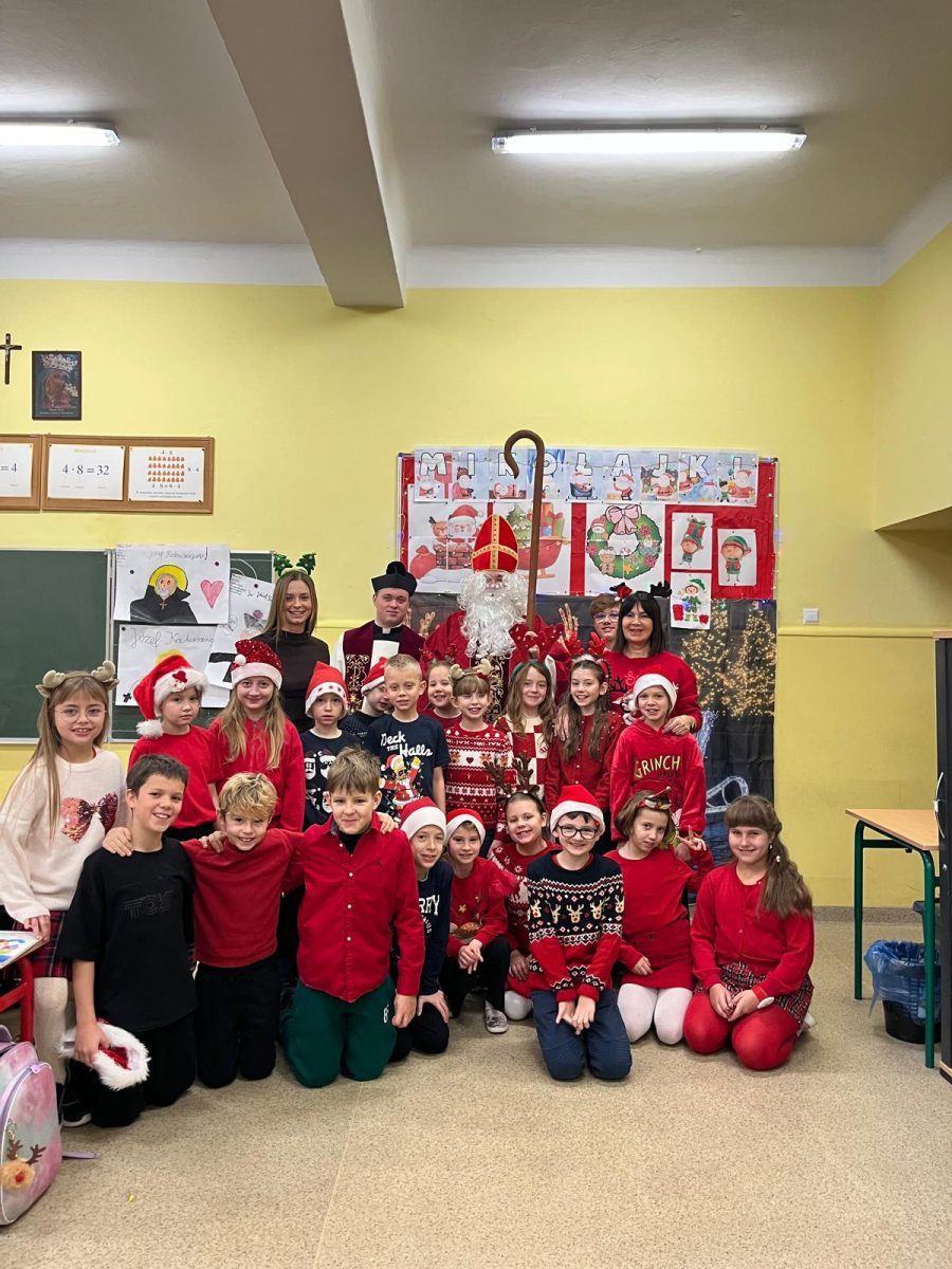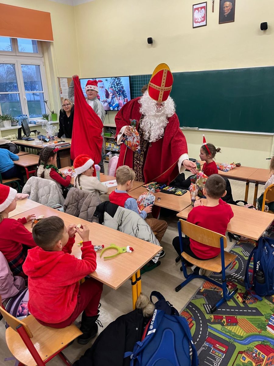 Jak co roku do naszej szkoły przybył Święty Mikołaj biskup. Tradycyjnie szkolne korytarze wypełnił dźwięk dzwonków, które oznajmiały, że długo wyczekiwany gość już dotarł i przyniósł podarki dla wszystkich grzecznych- małych i dużych, uczniów, nauczycieli oraz pracowników. W tym wyjątkowym dniu radość i szczęście opanowały całą szkołę. Uczniowie ubrani w odświętne stroje mikołajkowe przywitali Świętego wierszykami oraz piosenkami. Święty Mikołaj obiecał, że dołoży wszelkich starań, aby odwiedzić nas ponownie za rok. Czekamy z niecierpliwością!!!