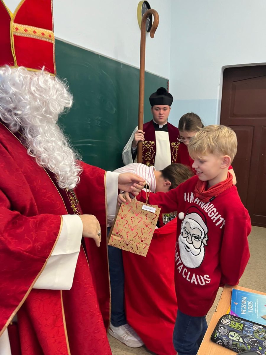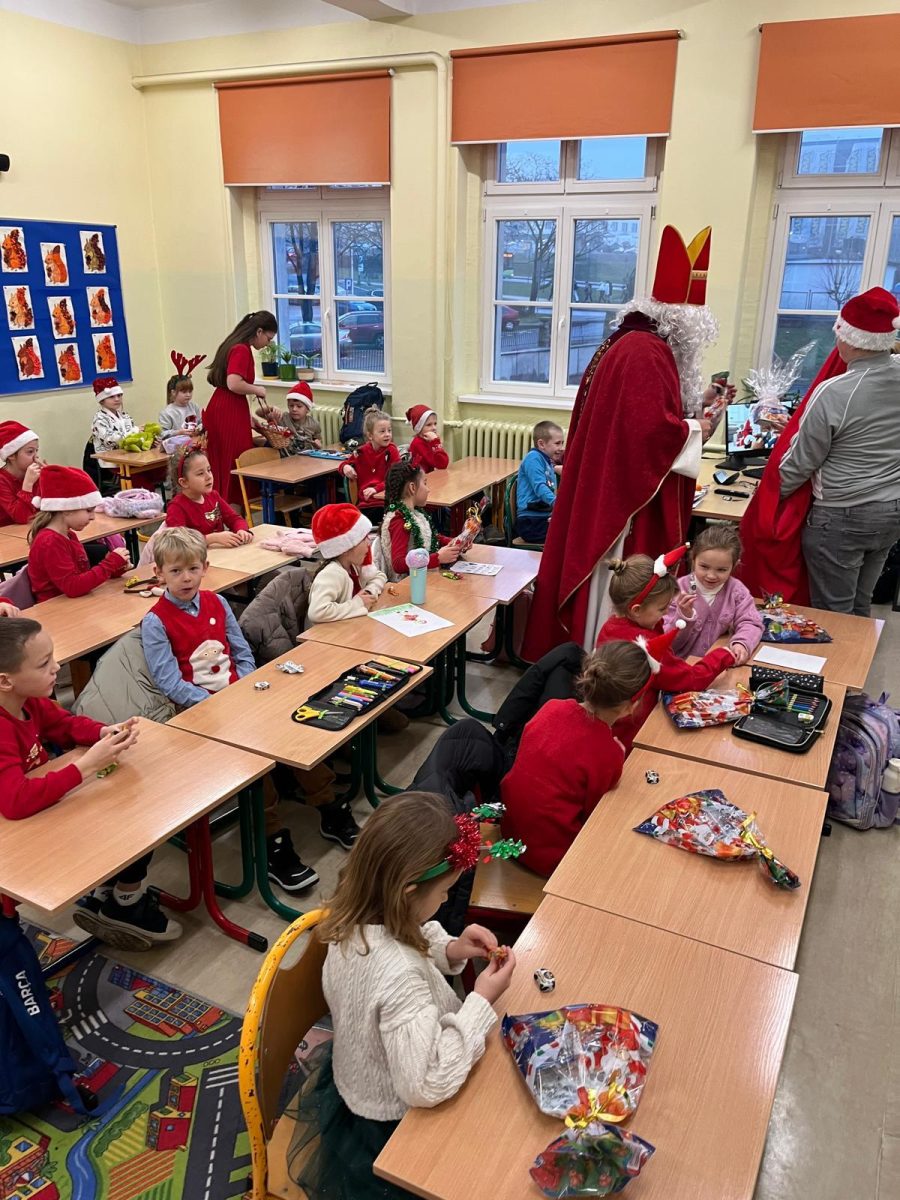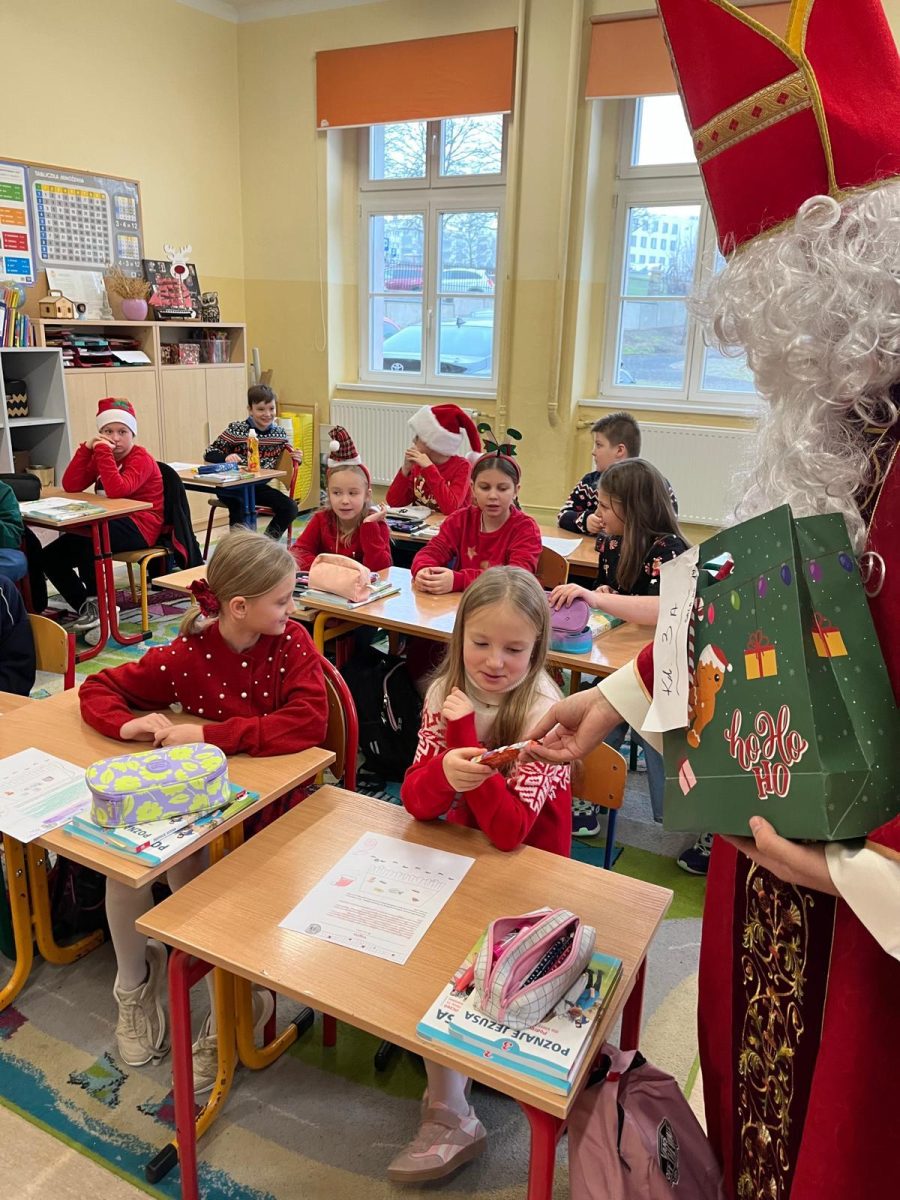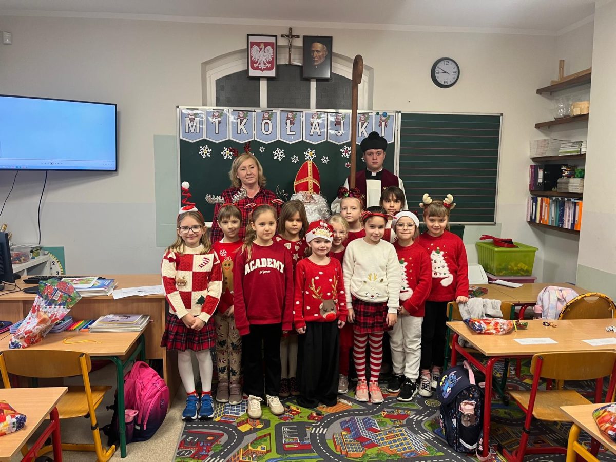 Jak co roku do naszej szkoły przybył Święty Mikołaj biskup. Tradycyjnie szkolne korytarze wypełnił dźwięk dzwonków, które oznajmiały, że długo wyczekiwany gość już dotarł i przyniósł podarki dla wszystkich grzecznych- małych i dużych, uczniów, nauczycieli oraz pracowników. W tym wyjątkowym dniu radość i szczęście opanowały całą szkołę. Uczniowie ubrani w odświętne stroje mikołajkowe przywitali Świętego wierszykami oraz piosenkami. Święty Mikołaj obiecał, że dołoży wszelkich starań, aby odwiedzić nas ponownie za rok. Czekamy z niecierpliwością!!!