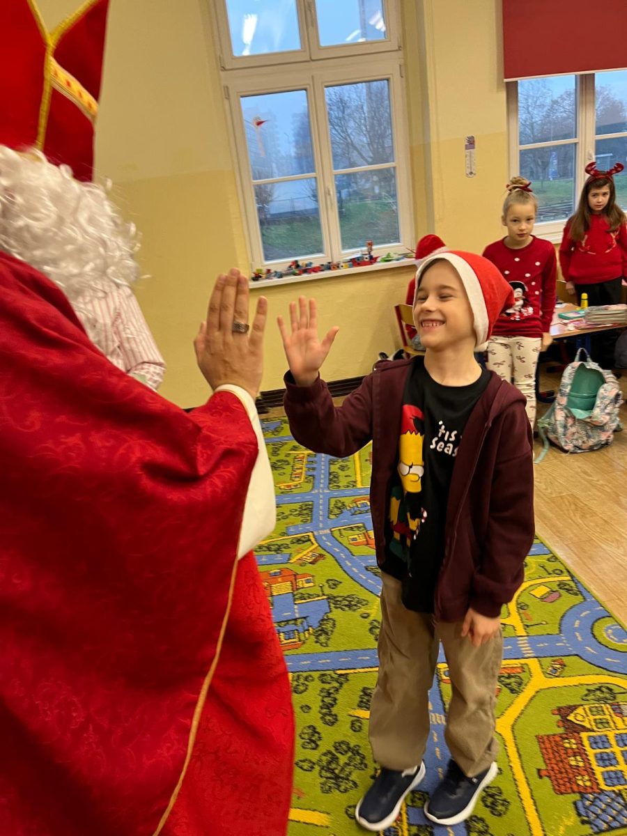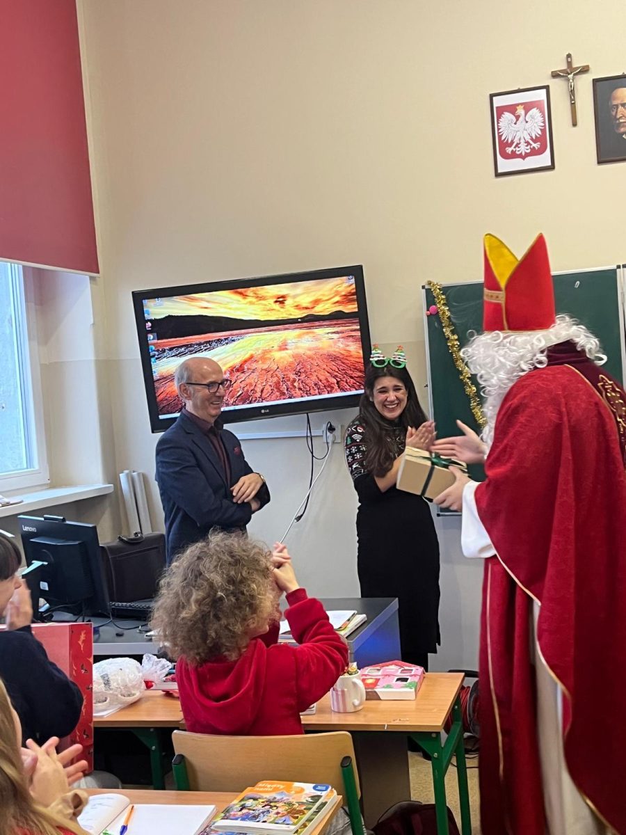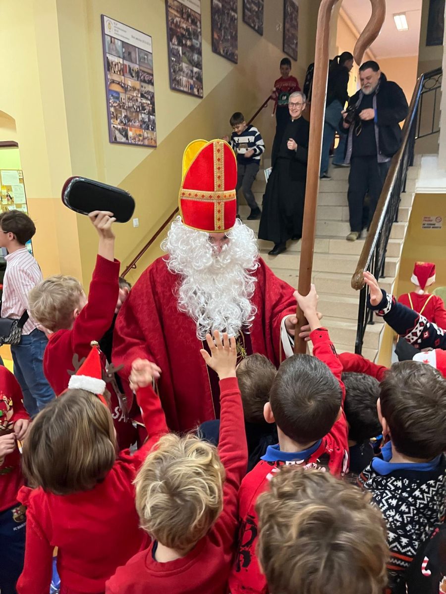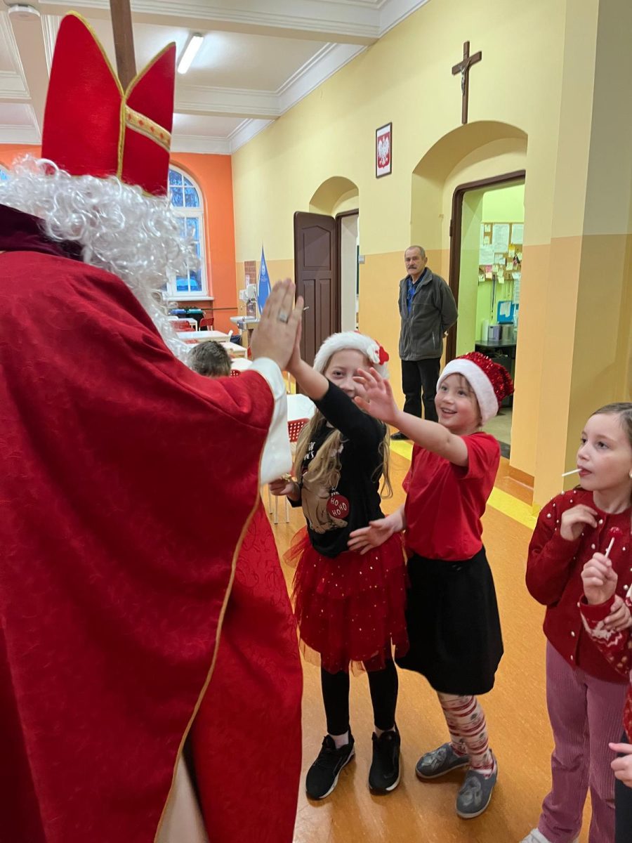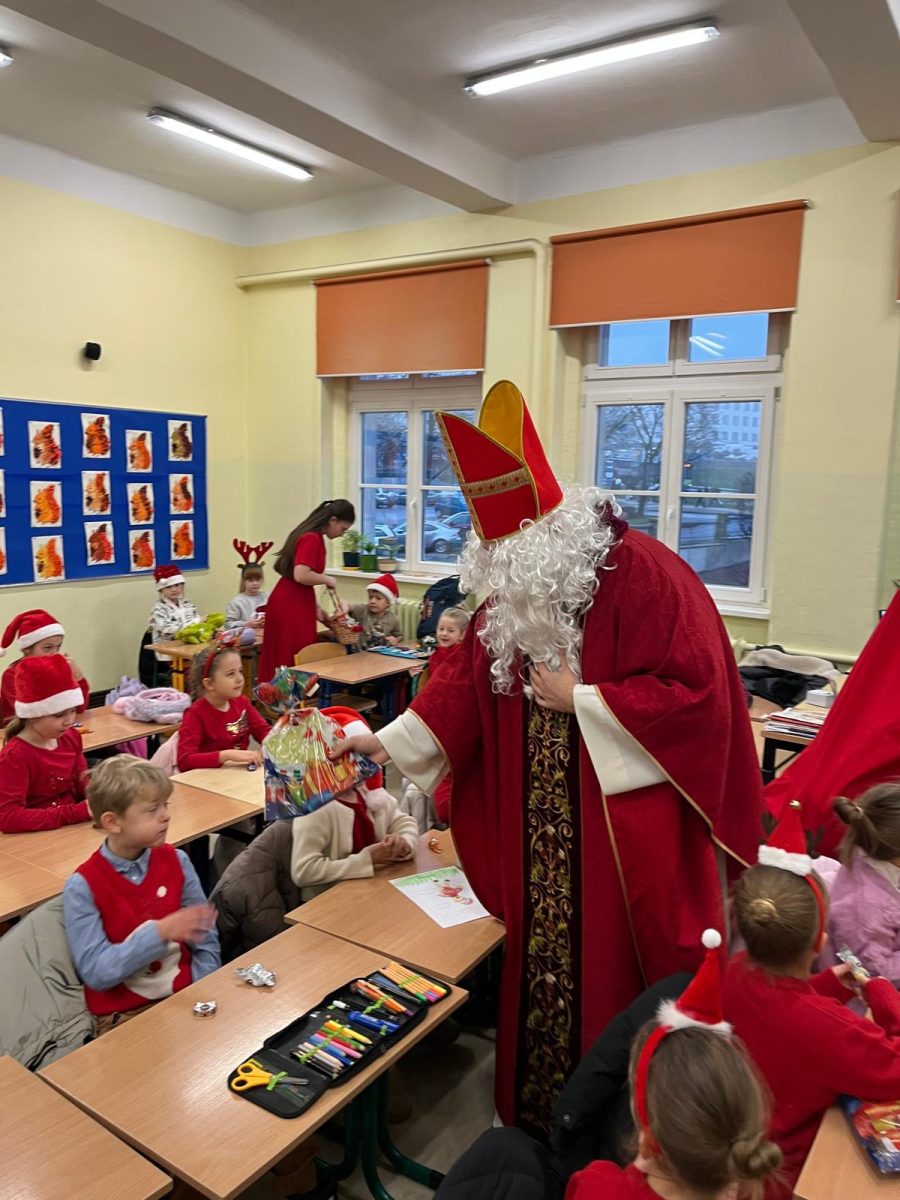 Jak co roku do naszej szkoły przybył Święty Mikołaj biskup. Tradycyjnie szkolne korytarze wypełnił dźwięk dzwonków, które oznajmiały, że długo wyczekiwany gość już dotarł i przyniósł podarki dla wszystkich grzecznych- małych i dużych, uczniów, nauczycieli oraz pracowników. W tym wyjątkowym dniu radość i szczęście opanowały całą szkołę. Uczniowie ubrani w odświętne stroje mikołajkowe przywitali Świętego wierszykami oraz piosenkami. Święty Mikołaj obiecał, że dołoży wszelkich starań, aby odwiedzić nas ponownie za rok. Czekamy z niecierpliwością!!!