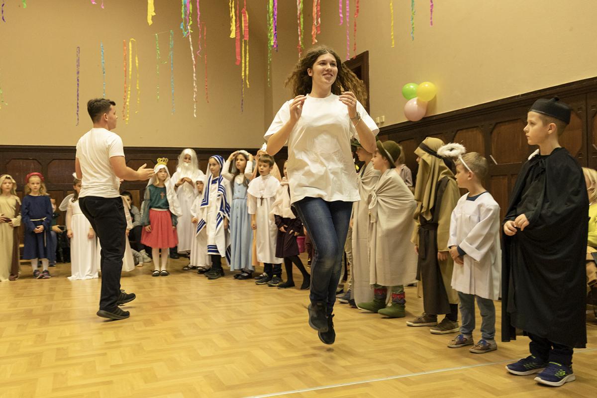 3 listopada odbył się w naszej szkole Bal Wszystkich Świętych, zorganizowany przez kleryka Bartosza Cieleckiego i o. Dominika Bochenka z pomocą animatorów. Uczniowie ze szkoły podstawowej przebrali się za świętych i błogosławionych, aby wspólnie bawić się w szkolnej auli. Twórczość i kreatywność dzieci i rodziców nie miały granic, na scenie pojawiło się wielu „świętych”, prezentujących tych, którzy oddali swoje życie na służbę Bogu i ludziom. Podczas balu wszyscy nasi „niebiańscy orędownicy” śpiewem i tańcem chwalili Boga. Czwartkowe spotkanie było okazją do tego, aby nieco lepiej poznać świętych, ich historię i przykład życia, a także w radosny sposób wspólnie spędzić czas i budować wspólnotę szkolną.