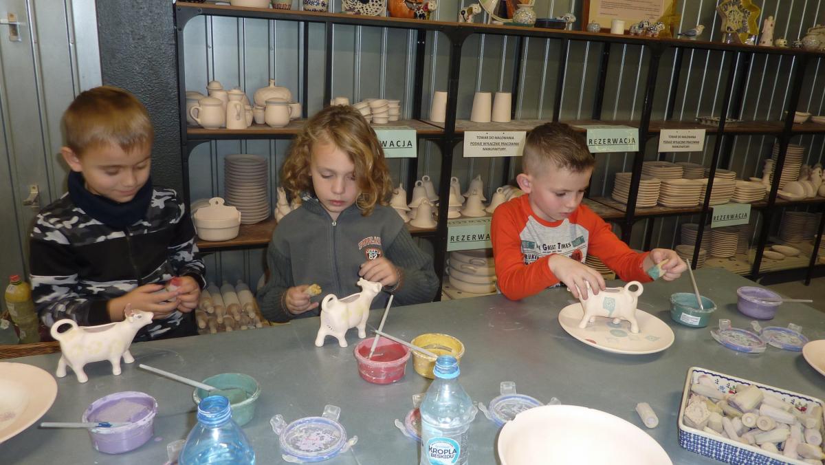 28 listopada uczniowie klas pierwszych pojechali do zakładu ceramicznego MANUFAKTURA. Najpierw mieliśmy okazję zwiedzić zakład i przyjrzeć się z bliska, jak powstają wyroby ceramiczne, z których słynie Bolesławiec. Potem wszyscy wzięliśmy udział w warsztatach ceramicznych. Każdy mógł własnoręcznie, stempelkami ozdobić mlecznik, czyli dzbanuszek na mleko. Powstały unikatowe, niepowtarzalne egzemplarze wyrobów ceramicznych.