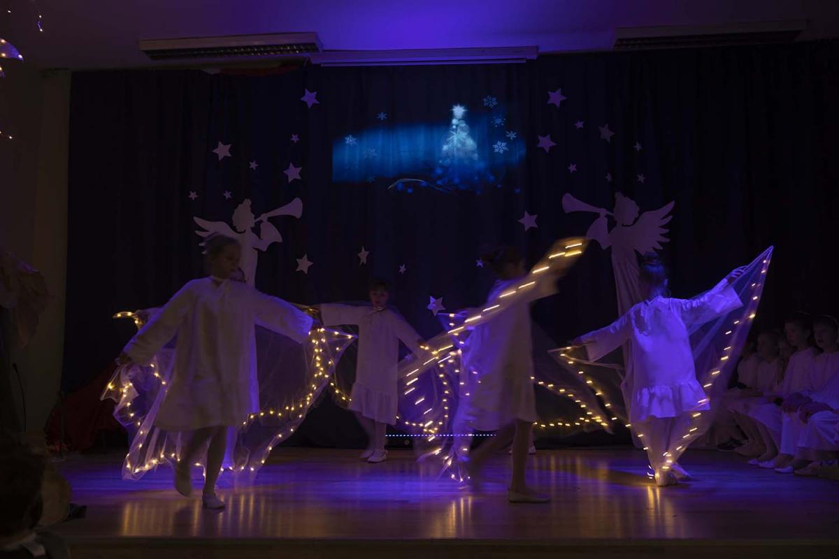 W tym roku przygotowały je klasy 3a i 3b SP pod opieką wychowawczyń – p. Małgorzaty Wieczorek i p. Agnieszki Czuj i zaprezentowały trzykrotnie – przed południem inscenizację obejrzały dwie grupy uczniów i nauczycieli, po południu rodzice i pozostali goście. Wykonawcy zachwycili publiczność grą aktorską, pięknym wykonaniem kolęd, a także choreografią taneczną połączoną ze wspaniałą grą świateł. Artystów z klasy trzeciej wspomogli p. Agnieszka Orawiec oraz o. Dominik Bochenek.