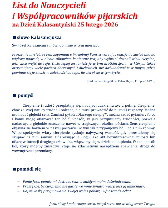 Zapraszamy do lektury „Listu Kalasantyńskiego” na 25 lutego.