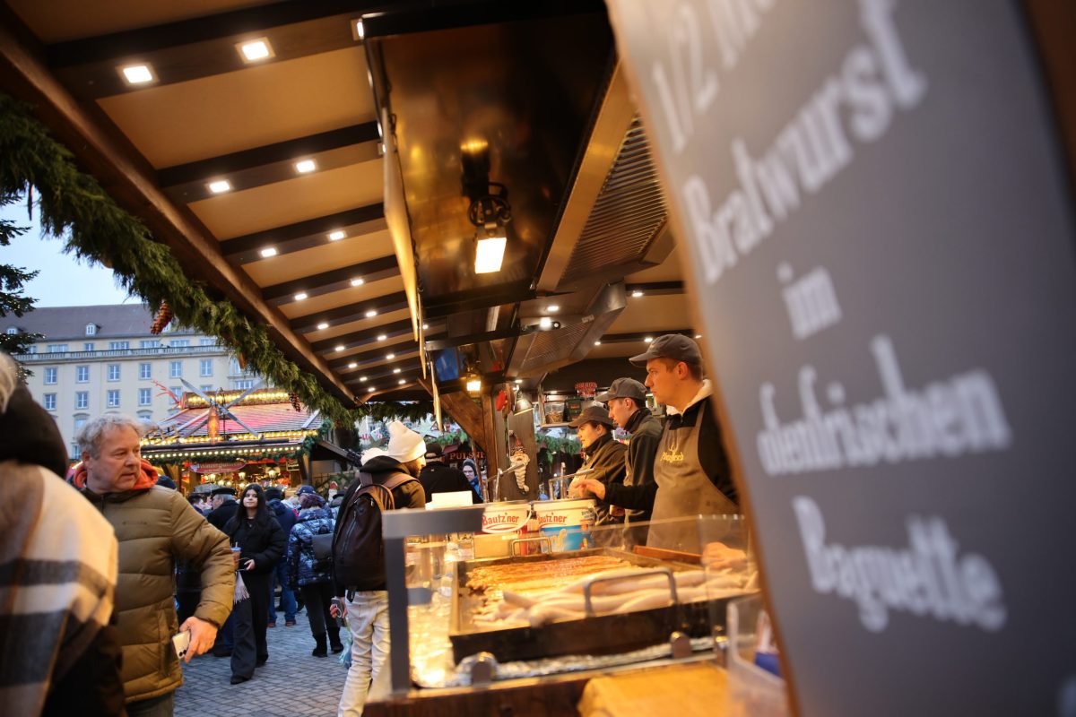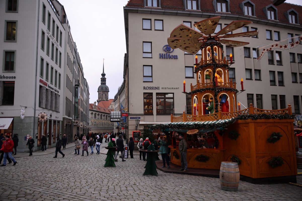 Następnie wraz z naszym przewodnikiem p. Marcinem Sarkowiczem udaliśmy się na spacer po pięknej Starówce Drezna i jej najważniejszych zabytkach. Zwiedzanie zakończyliśmy na „Striezelmarkt” – najstarszym w Niemczech jarmarku przedświątecznym, gdzie cieszyliśmy nasze oczy mieniącymi się światłami i migoczącymi gwiazdami, a nozdrza zapachem grzanego wina i piernika.