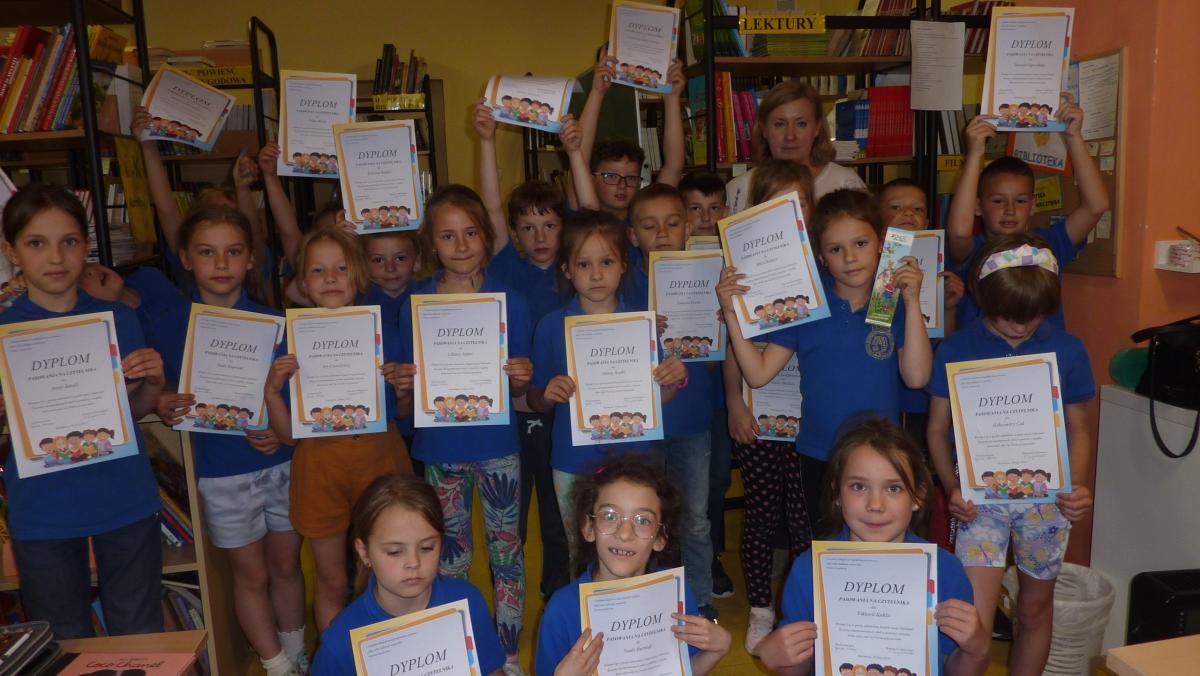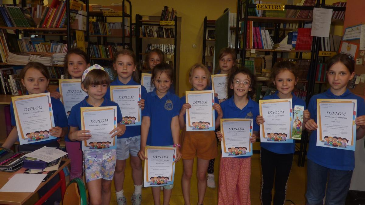 29 i 30 maja uczniowie klasy 1a i 1 b SP zostali uroczyście przyjęci do grona czytelników naszej szkolnej biblioteki. Podczas wizyty w bibliotece czytali fragmenty ulubionych książek, rozwiązywali zagadki oraz krzyżówki dotyczące bohaterów bajek, baśni i legend. Pani Ela omówiła z uczniami  regulamin i zasady panujące w bibliotece oraz, jak należy szanować książki. Nowym czytelnikom dedykujemy wiersz Hanny Ożogowskiej :