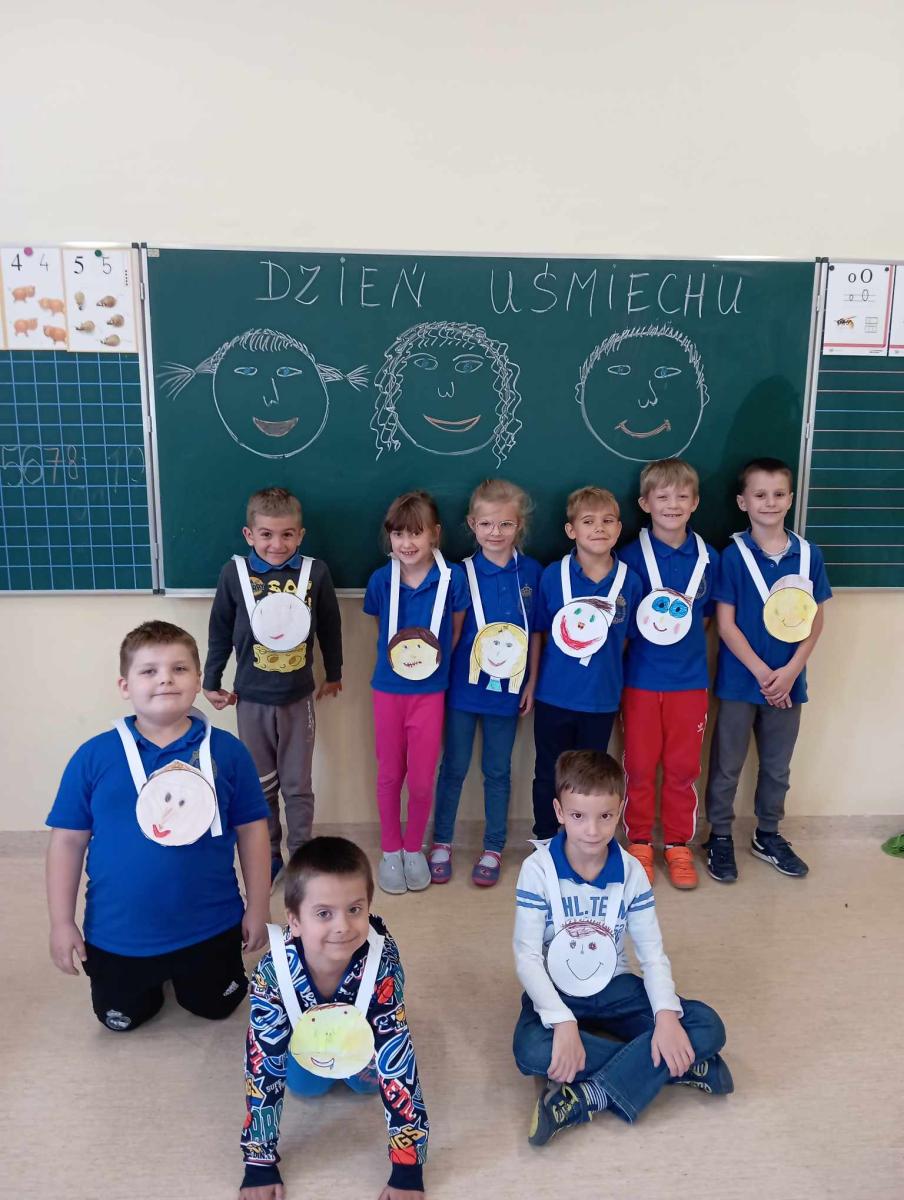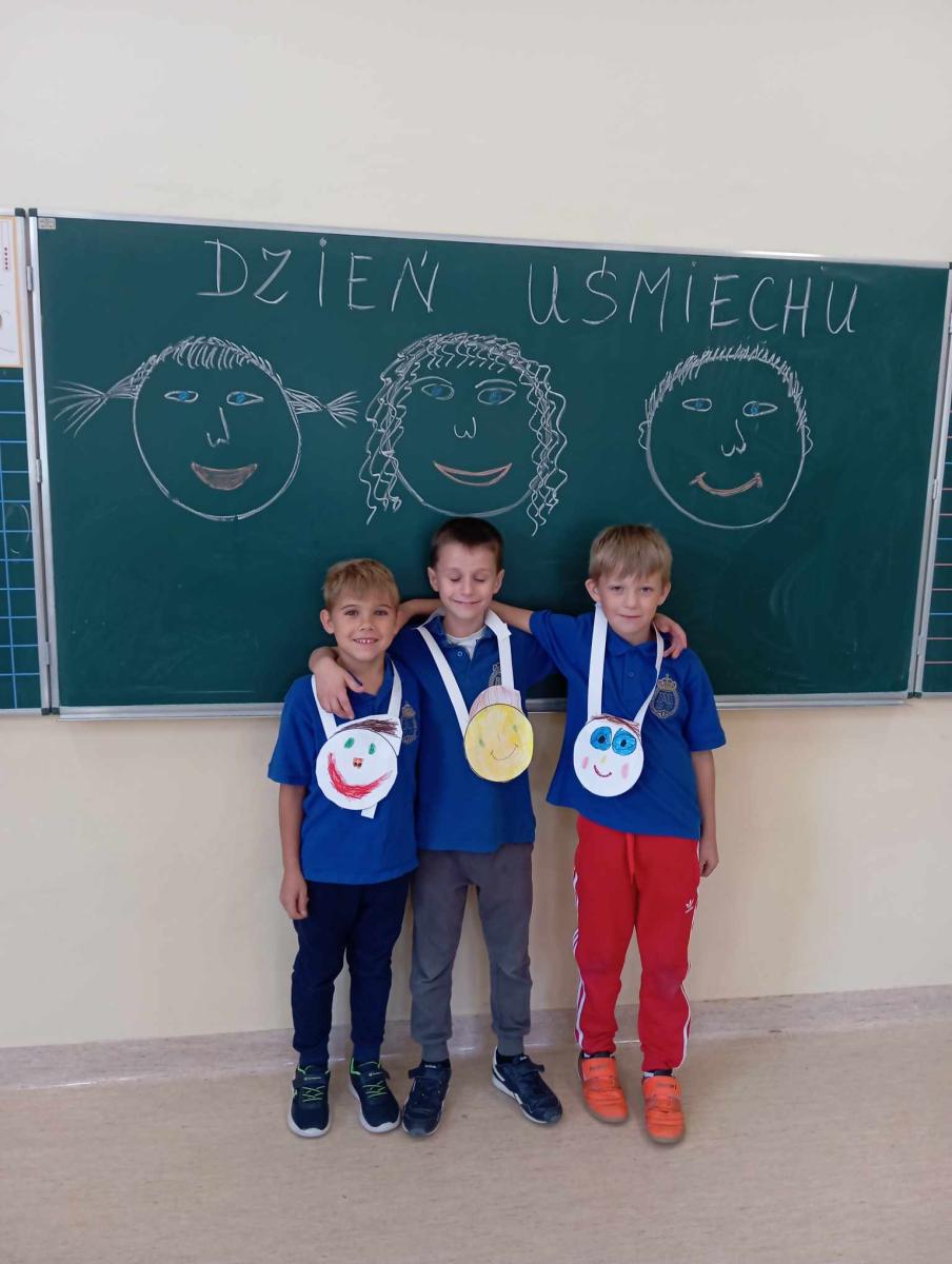 5 października uczniowie klasy 1a SP podczas zajęć świetlicowych obchodzili Światowy Dzień Uśmiechu. Każde dziecko malowało swój uśmiech na kartce, a po wycięciu „buziek” powstały wesołe „medale uśmiechu”. To był wspaniały, wesoły dzień.