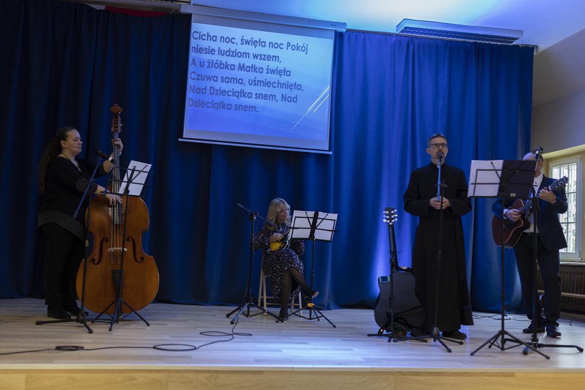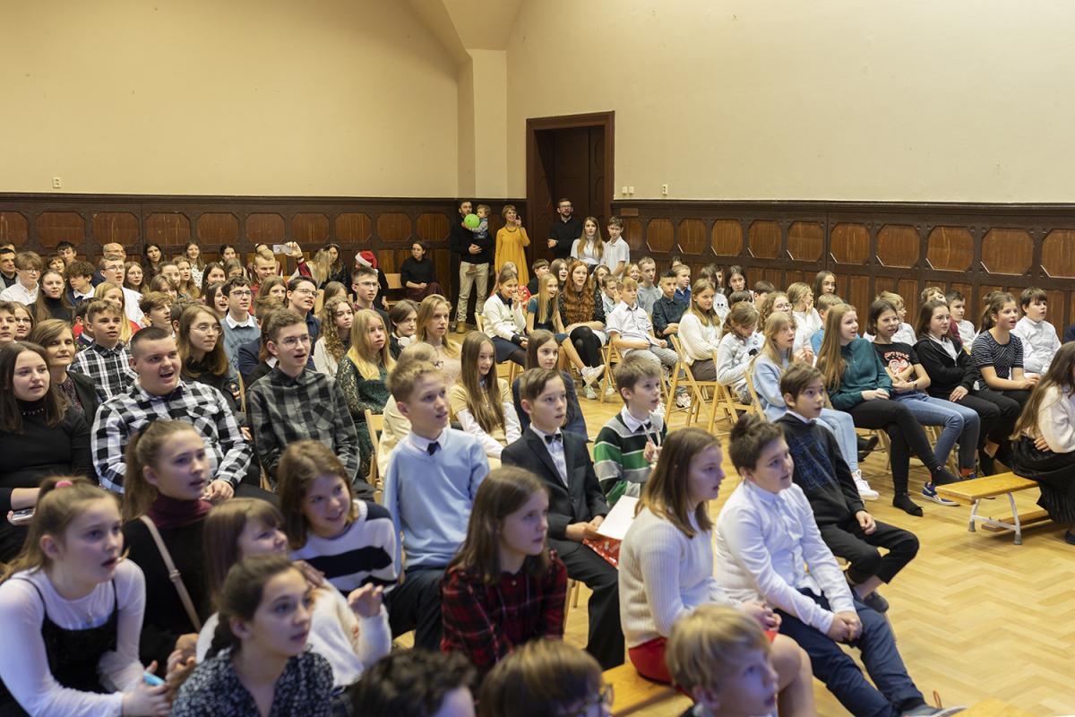 W czasie spotkania dyrektor szkoły o. Marek Kudach przedstawił wyniki konkursu na najpiękniejszą kartkę świąteczną ogłoszonego kilka tygodni temu.