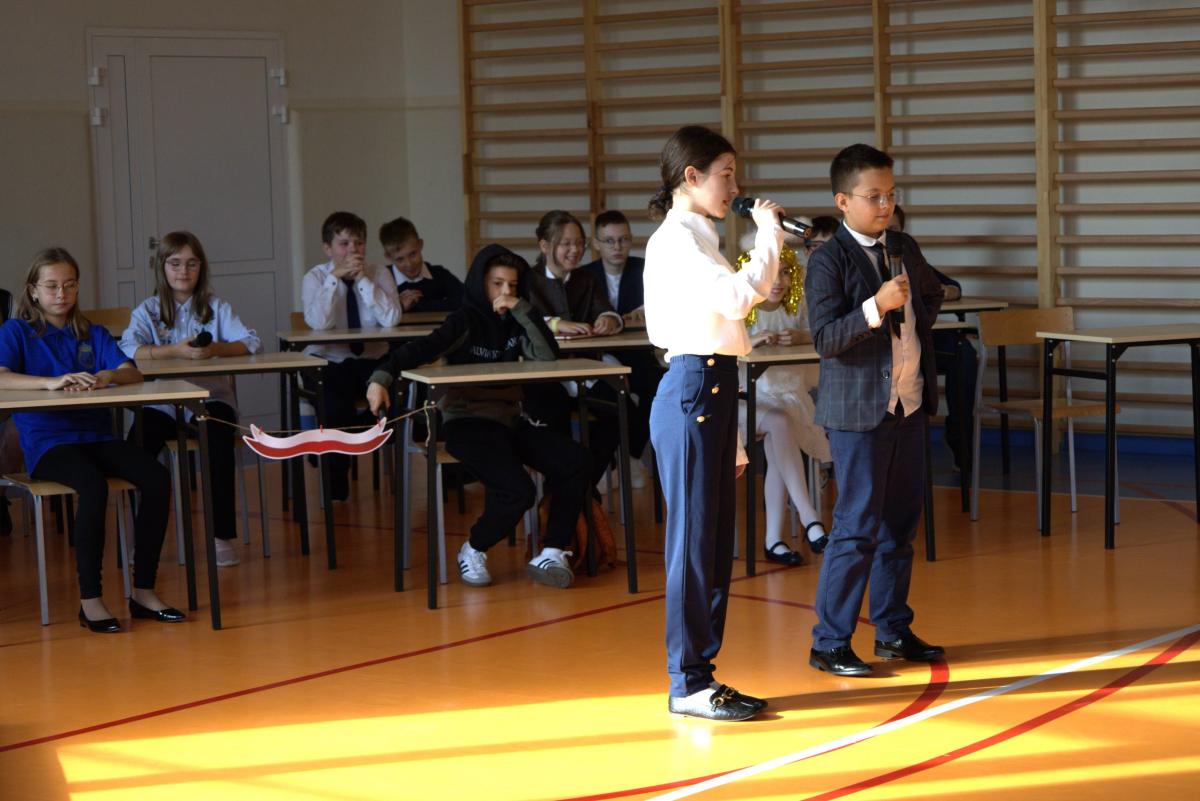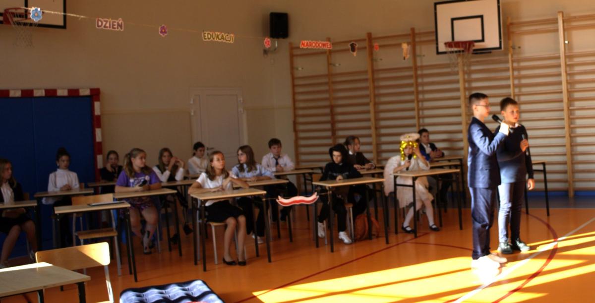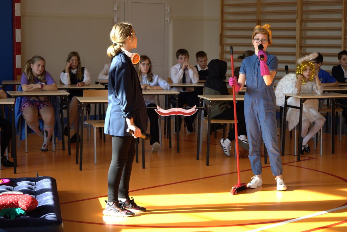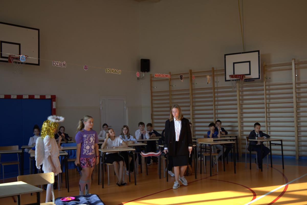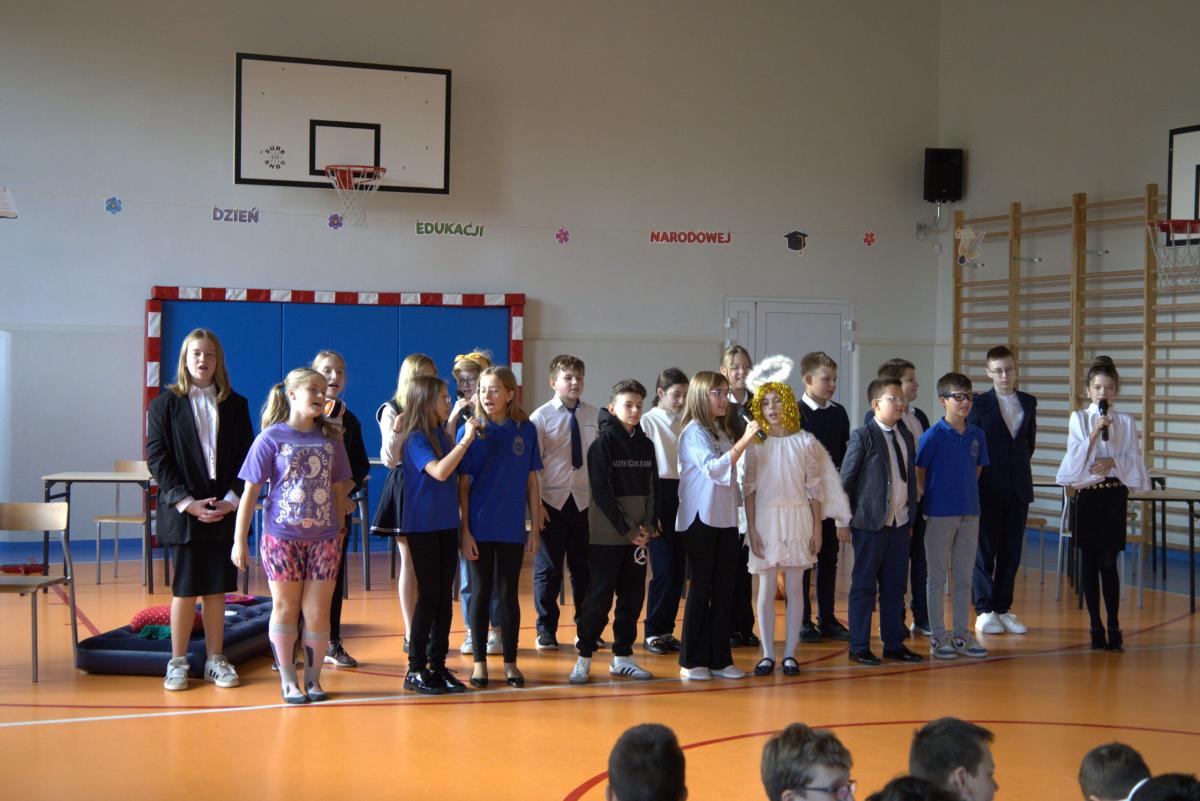 W przeddzień święta, w piątek 11 października, nasi uczniowie podziękowali swoim nauczycielom oraz pozostałym pracownikom szkoły za ich pracę, okazywane na co dzień wsparcie i życzliwość. Wdzięczność w imieniu całej wspólnoty szkolnej wyrazili Samorząd Uczniowski oraz klasa 5a SP pod opieką wychowawczyni p. Lilli Kleszczyńskiej, między innymi w żartobliwym programie artystycznym, ukazującym w lekko skrzywionym zwierciadle prawdę o pracy nauczycieli i innych pracowników szkoły. Życzenia w kierunku nauczycieli, pracowników obsługi oraz uczniów popłynęły również ze strony dyrektora szkoły o. Marka Kudacha oraz wicedyrektor p. Agaty Kozickiej.