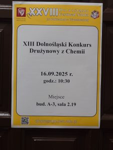 16 września br. uczennice Aleksandra Czechowska z klasy 4 LO oraz Julia Kołodziej z klasy 3 LO reprezentowały naszą szkołę w 13. edycji Dolnośląskiego Konkursu Drużynowego z Chemii, organizowanego przez Politechnikę Wrocławską w ramach Dolnośląskiego Festiwalu Nauki. Program obejmował również uczestniczenie w wykładzie „O sideroforach słów kilka”. Dziękujemy uczniom za godne reprezentowanie naszej szkoły!