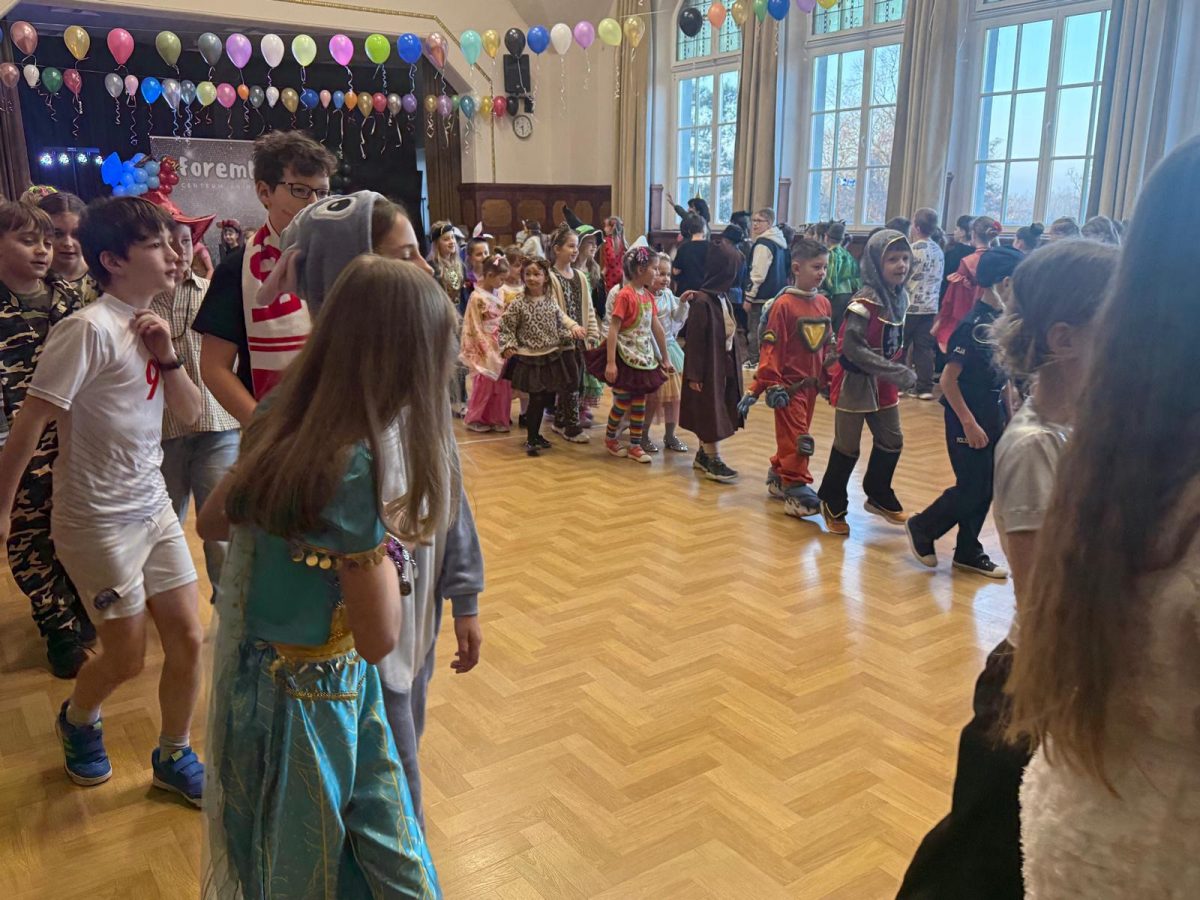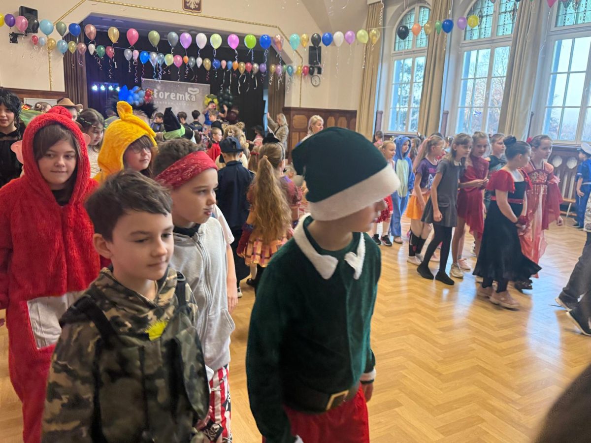 22 stycznia odbył się w naszej szkole bal karnawałowy dla klas 1-4 i 5-7 SP. Tradycyjnie dzieci przebrały się za swoje ulubione postacie z bajek, superbohaterów, piłkarzy. Dobrą, wspólną zabawę w auli szkolnej zapewniła uczestnikom balu pani Agata Nikodem z Centrum Animacji „Foremka” oraz nasi animatorzy. Wszystkie dzieci mogły sprawdzić swoje siły w licznych tańcach i zabawach. Przy dźwiękach muzyki uczniowie spędzili radośnie czas, racząc się w przerwie słodkościami 😊