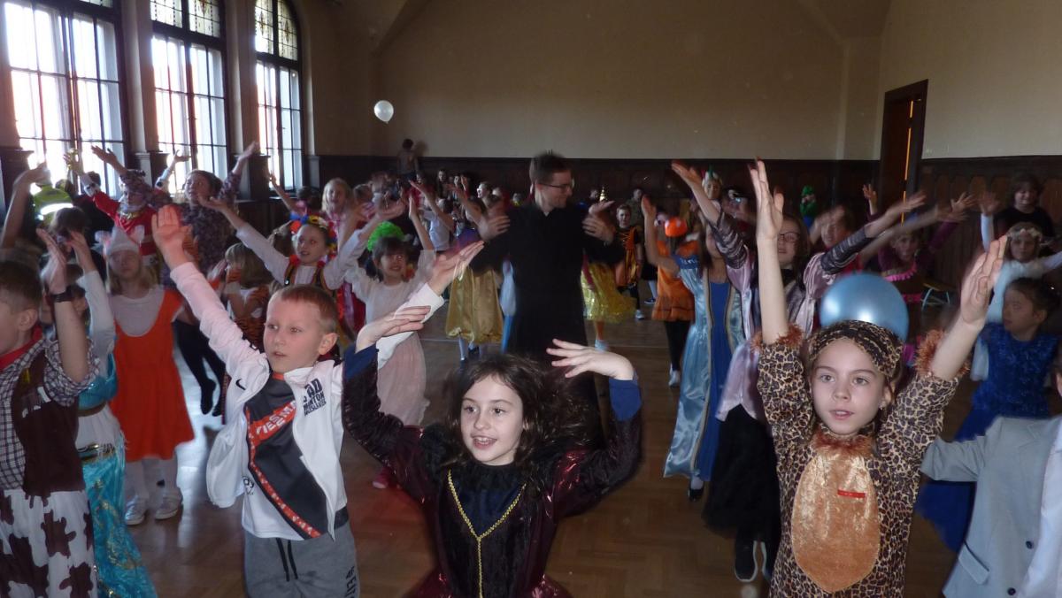 17 lutego odbył się w naszej szkole bal karnawałowy dla klas 1-4 SP. Tradycyjnie dzieci przebrały się za swoje ulubione postacie z bajek, superbohaterów, piłkarzy, a nawet przybyszów z obcej planety. W godzinach porannych uczniowie wraz z wychowawcami przystroili swoje klasy balonami i kolorowymi serpentynami, aby jeszcze bardziej poczuć klimat karnawału. Szczególną rozrywkę zapewniła uczestnikom balu wspólna zabawa w auli szkolnej. Wszystkie dzieci mogły sprawdzić swoje siły w licznych tańcach i zabawach zręcznościowych z balonami. Przy dźwiękach muzyki dzieci spędziły radośnie czas wraz ze swoimi rówieśnikami. Na zakończenie balu odbył się poczęstunek w salach, o który zadbali rodzice.