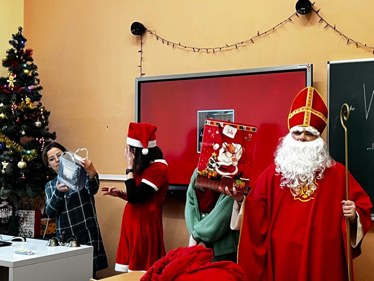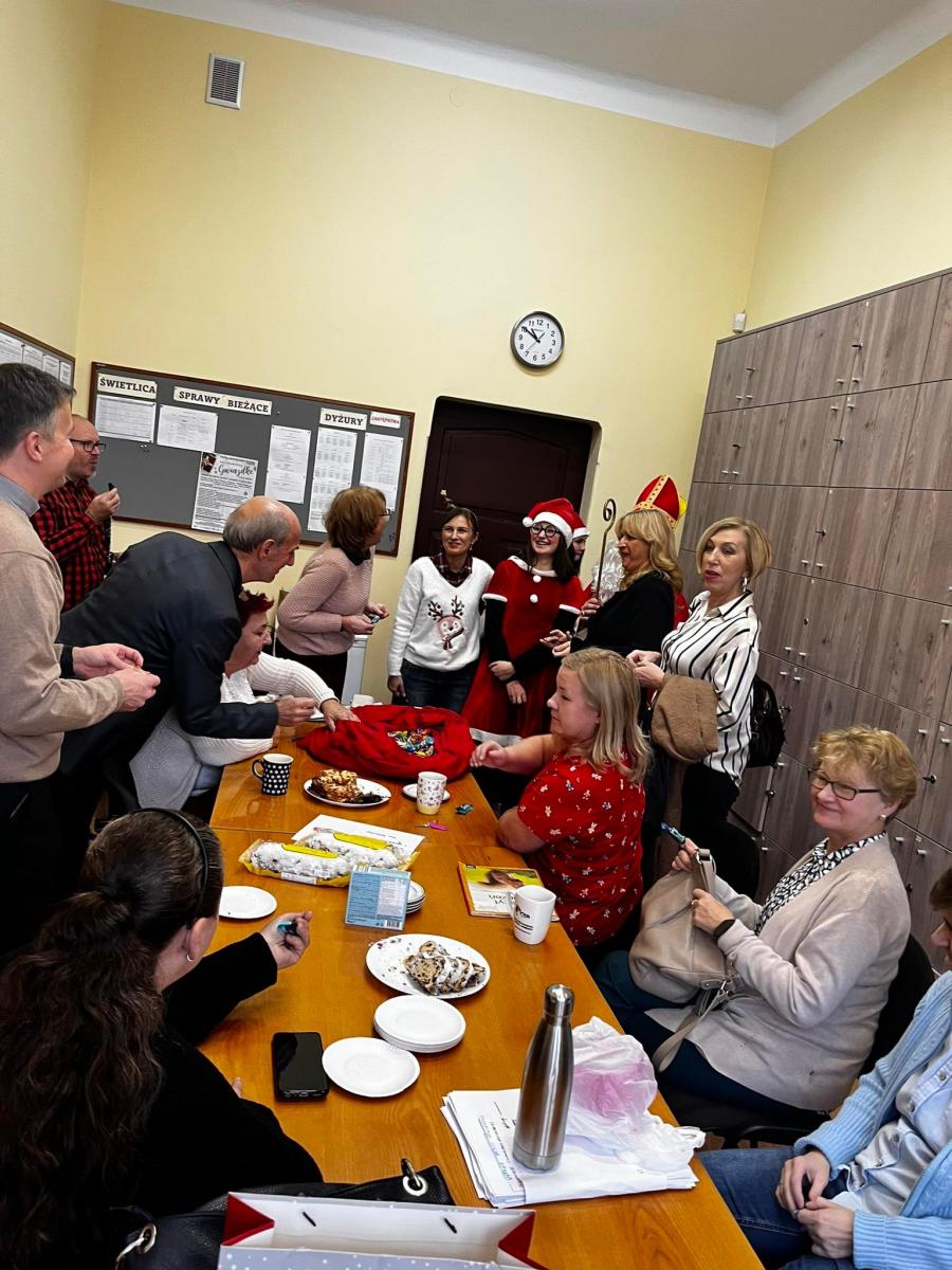 Święty odwiedził również nauczycieli zebranych w pokoju nauczycielskim, którzy zaniemówili z zaskoczenia i obdarowali Mikołaja przepięknymi uśmiechami.