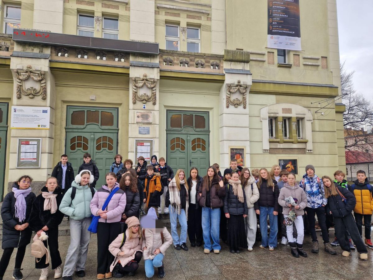 5 grudnia 2025r. klasy 7a i 7b wybrały się do Teatru im. C.K. Norwida w Jeleniej Górze na spektakl pt. „Opowieść wigilijna” Charlesa Dickensa. Przedstawienie okazało się niezwykle ciekawe i poruszające. Dzięki barwnym postaciom, nastrojowej scenografii i pięknemu przesłaniu uczniowie mogli jeszcze głębiej poczuć klimat świąt oraz zastanowić się nad wartością dobroci i empatii. Wyjazd był także okazją do integracji oraz rozwijania wrażliwości artystycznej.