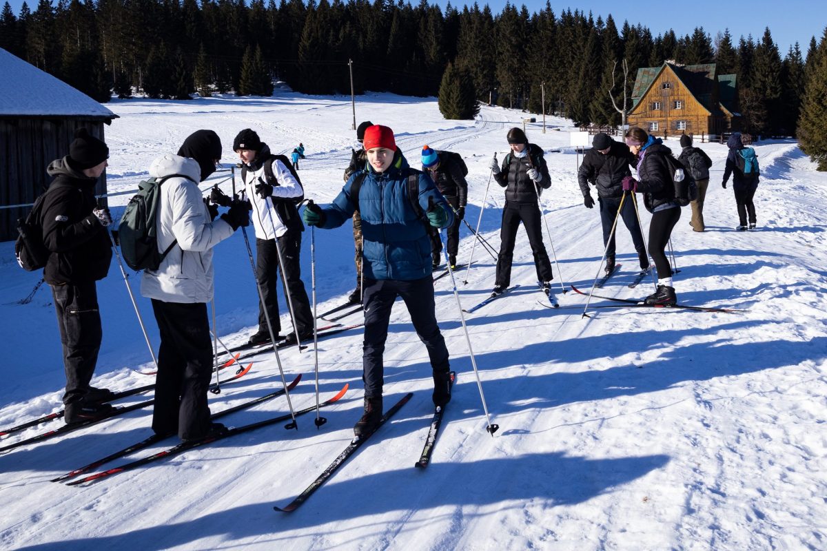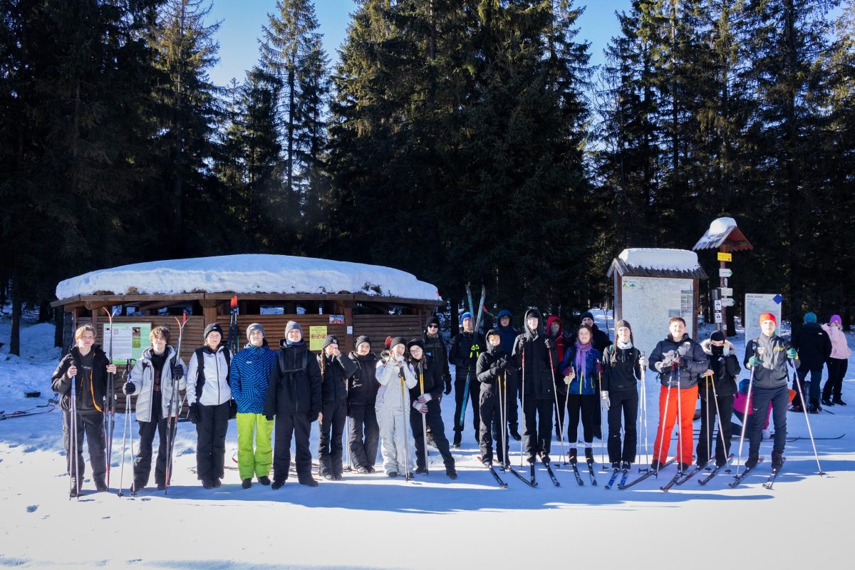 W środę 21.01 grupa uczniów z liceum oraz VIII klasy uczestniczyła w wyjeździe na narty biegowe. Biegliśmy spod Dolnośląskiego Centrum Sportu w Jakuszycach do schroniska Orle i z powrotem. Na miejscu przywitała nas piękna zimowa pogoda – mroźna, ale słoneczna, dlatego bieg do schroniska to była czysta przyjemność. Tam zrobiliśmy odpoczynek na gorącą herbatę oraz posiłek, a później po zapozowaniu do kilku pamiątkowych zdjęć wróciliśmy do punktu startowego.