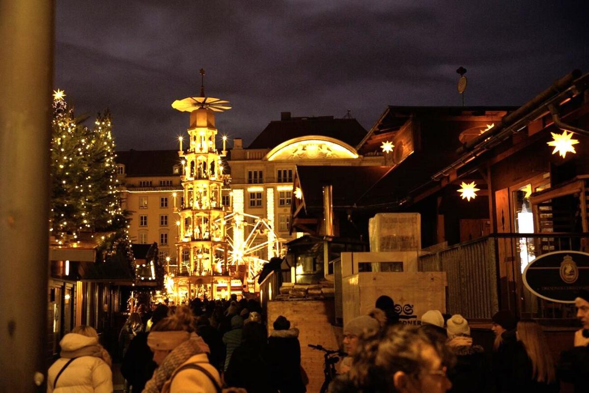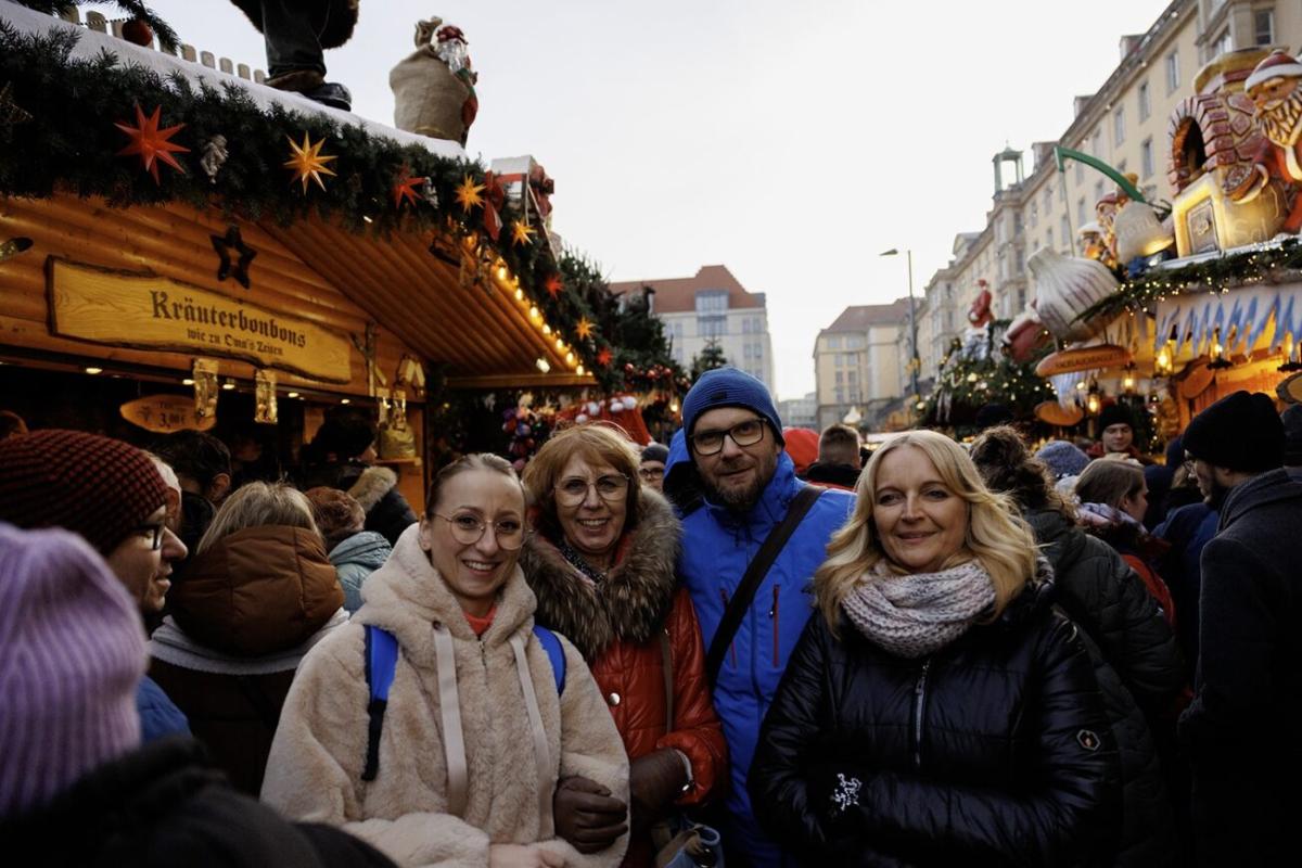 Zwiedzanie zakończyliśmy na Striezelmarkt, gdzie cieszyliśmy nasze oczy mieniącymi się światłami i migoczącymi gwiazdami, a nozdrza zapachem grzanego wina i piernika. Tam rzemieślnicy oferują unikalne, ręcznie wykonane ozdoby, zabawki i prezenty, które odzwierciedlają dziedzictwo kulturowe miasta i okolic. Jarmark Striezelmarkt odbywający się w Dreźnie to najstarszy jarmark bożonarodzeniowy w historii Niemiec.