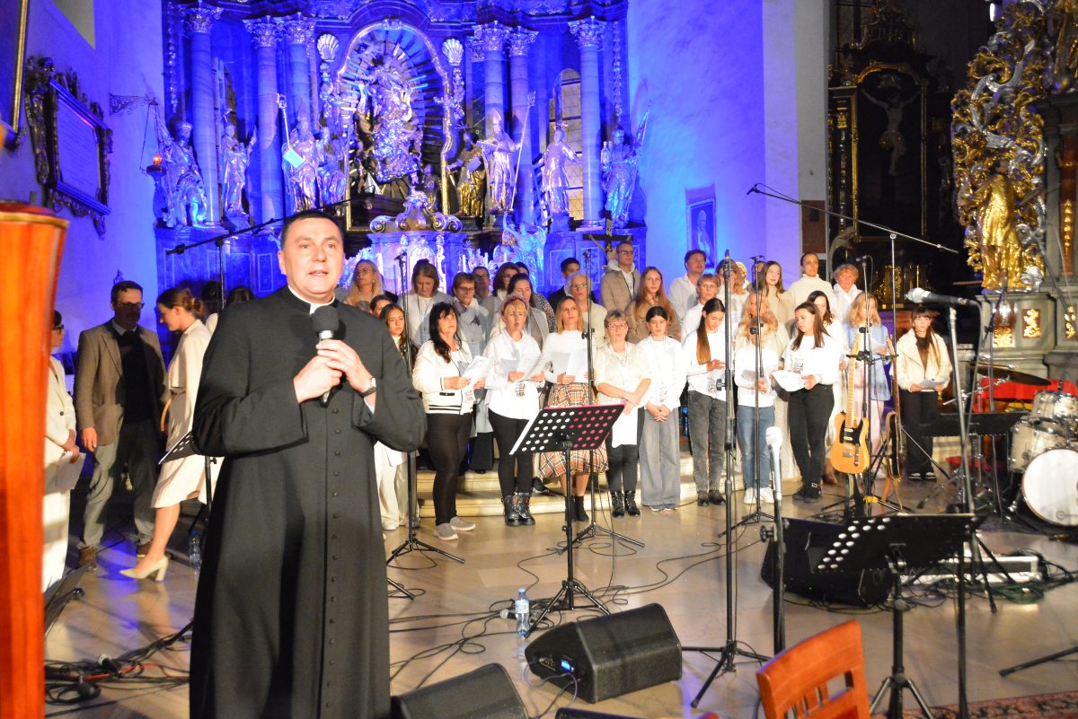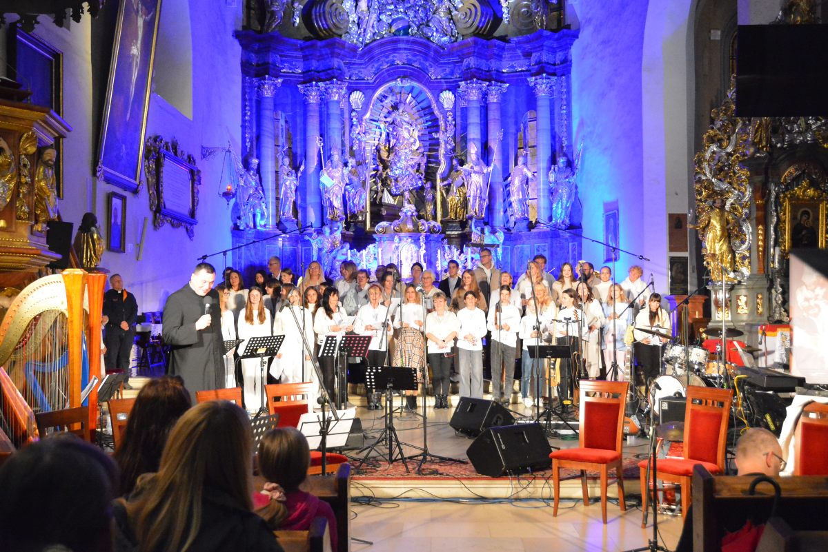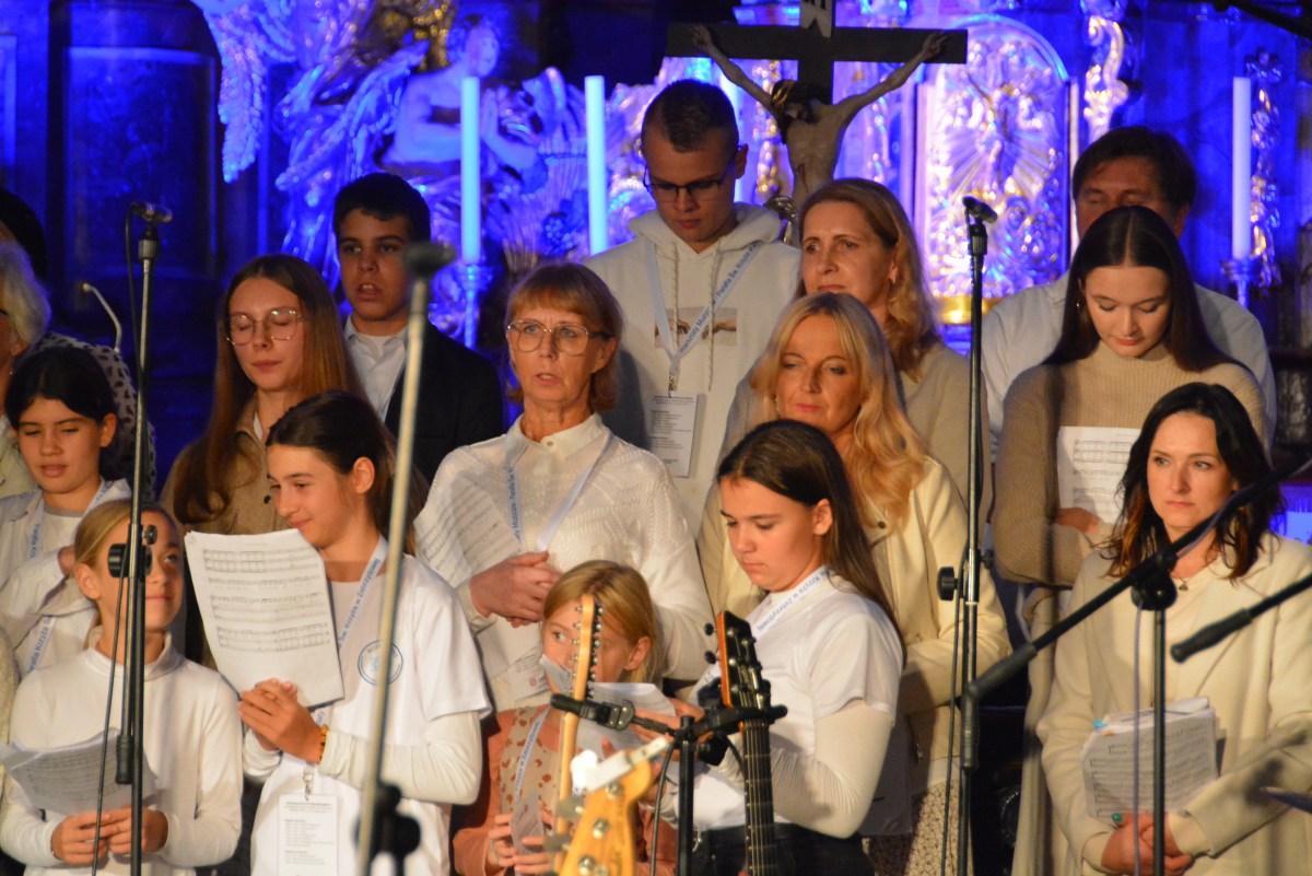 W niedzielę 15 września odbył się w bolesławieckiej bazylice koncert zespołu Deus Meus, który był jednocześnie koncertem jubileuszowym z okazji 30-lecia istnienia jednego z najlepszych zespołów grających muzykę chrześcijańską. Został on poprzedzony warsztatami muzycznymi w Zebrzydowej, które każdego roku w Święto Podwyższenia Krzyża Św. organizuje KS. JACEK SAŁADUCHA, proboszcz parafii Podwyższenia Krzyża Św. w Zebrzydowej. Uczestnicy warsztatów, wśród których byli uczniowie, absolwenci oraz nauczyciele naszej szkoły, mieli zaszczyt zaśpiewać i zagrać z zespołem Deus Meus w niedzielnym, jubileuszowym koncercie w bazylice. Nasi uczniowie zaangażowali się również w zbiórkę datków na rzecz Hospicjum Bł. Ks. Michała Sopoćki, jedynego takiego domu na Litwie, który powstał w miejscu, gdzie został namalowany pierwszy obraz Jezusa Miłosiernego („Jezu, ufam Tobie”). Hospicjum prowadzi s. Michaela Rak. Zespół Deus Meus, oprócz łaski tworzenia i wykonywania pięknej muzyki, stał się także ambasadorem tego niezwykłego dzieła pn. „Most do nieba”. Po każdej mszy św. w niedzielę 15 września w bolesławieckiej bazylice, jak również w trakcie koncertu zespołu uczniowie naszego liceum: